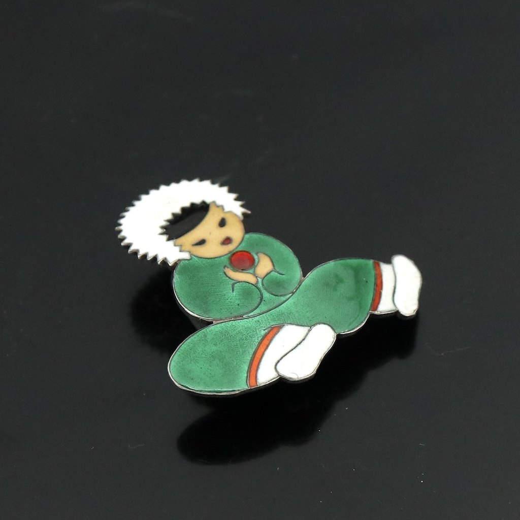 A. Dragsted - Copenhagen. Sterling Silver Brooch with Enamel.