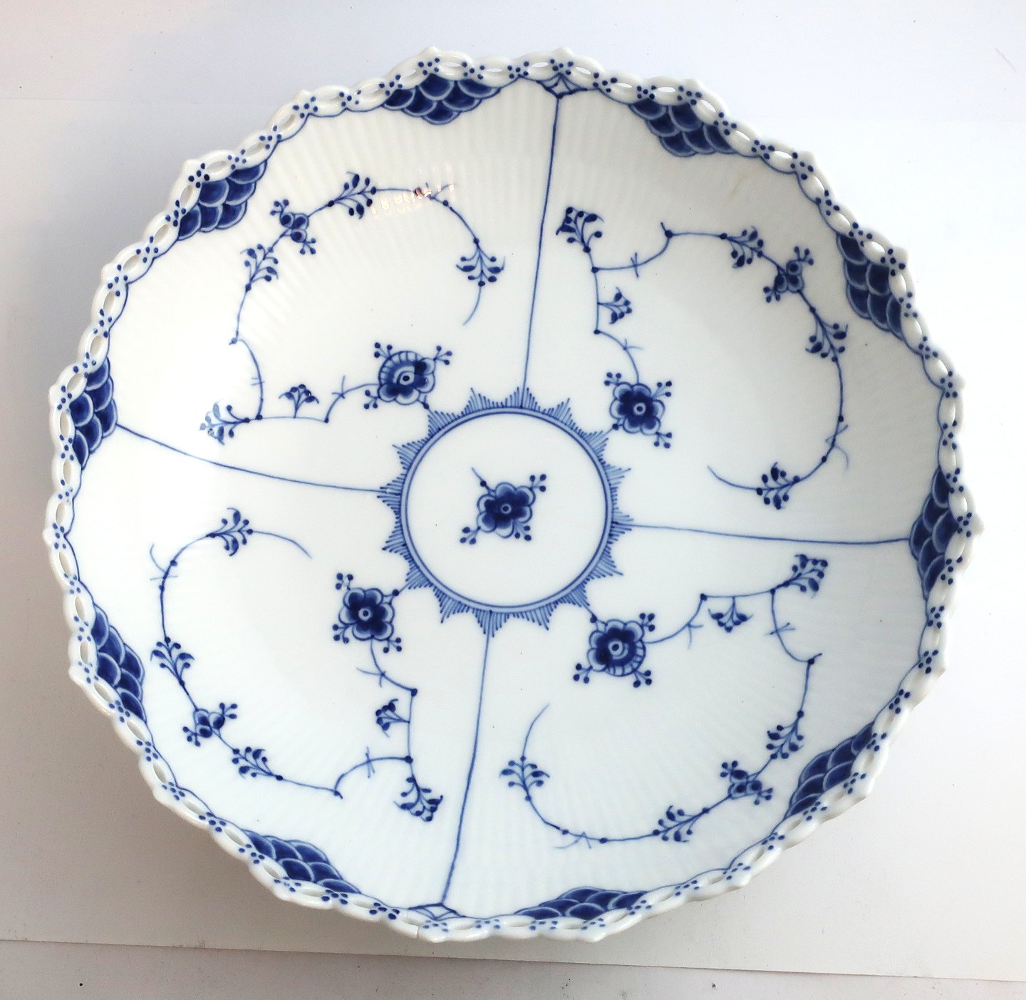 Royal Copenhagen. Blue fluted, full lace. Round bowl. Model 1019. Height 7 cm. Diameter 27 cm. With errors from production (see photo). (3 quality)