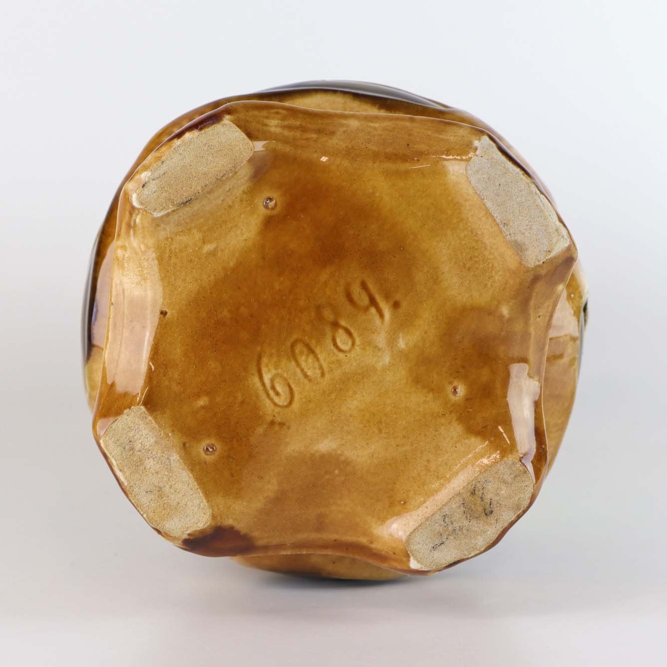 Høj vase i fajance i stilen art nouveau Majolica dekoreret med blade og bær. Nr. 6084