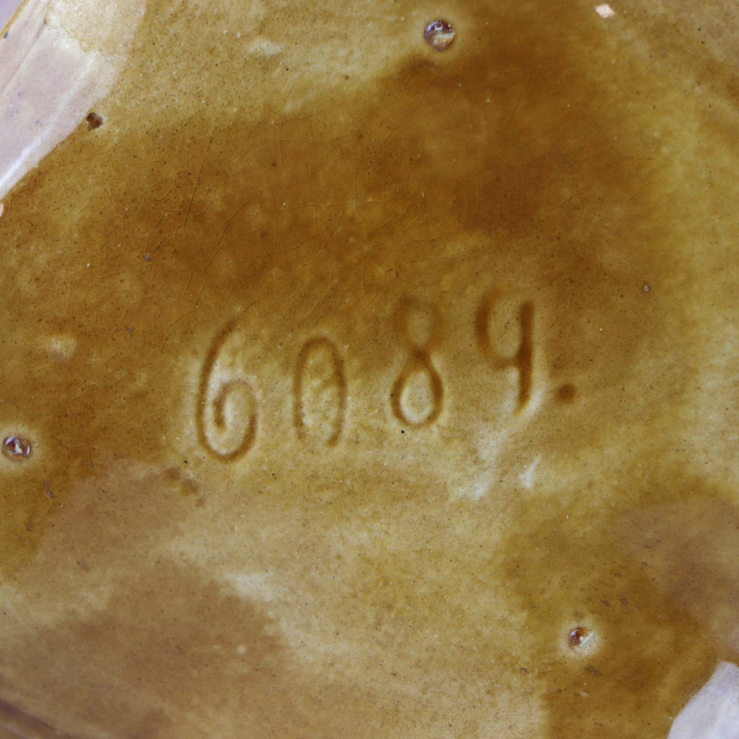 Fremstår med enkelt fejl i støbningen samt krakeleringer i glasuren.
