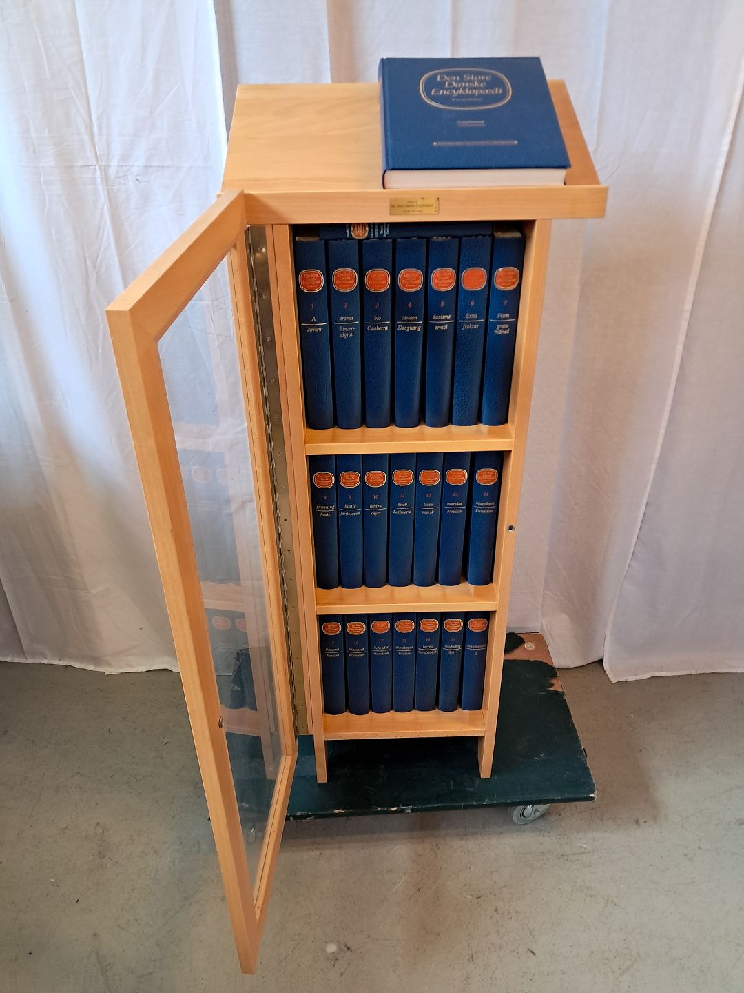 Text available in Danish: Den Store Danske encyklopædi, med skab designet af Tom Stepp.