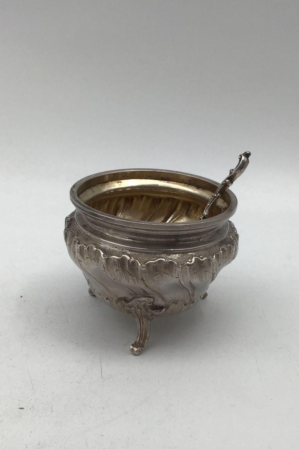 French Silver Salt Cellar + Salt Spoon