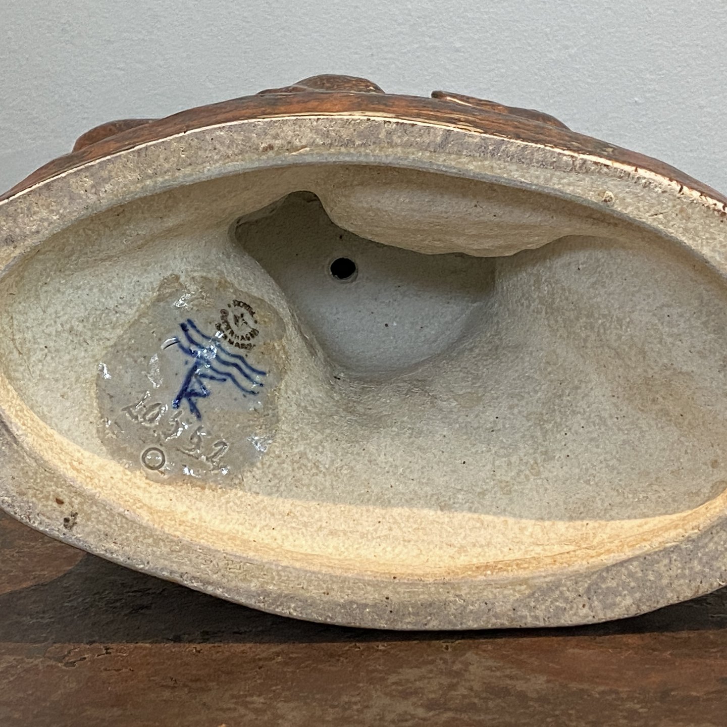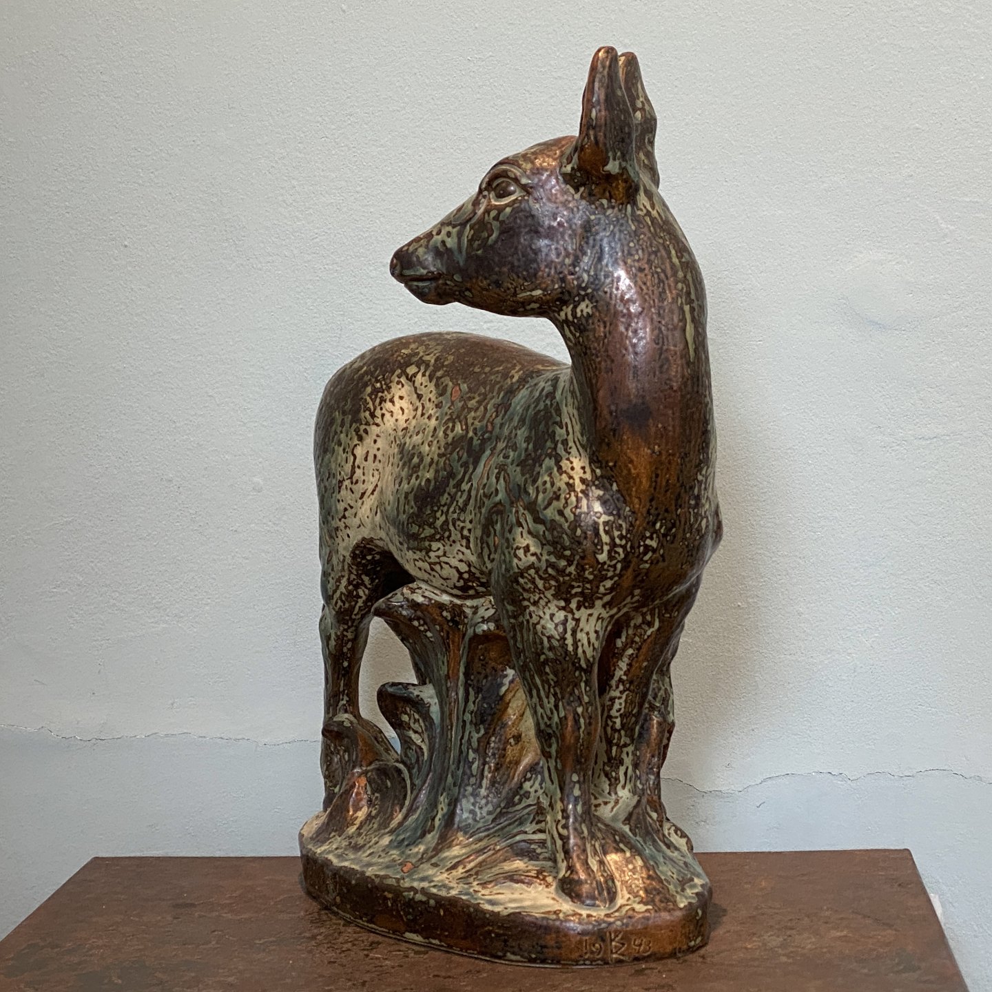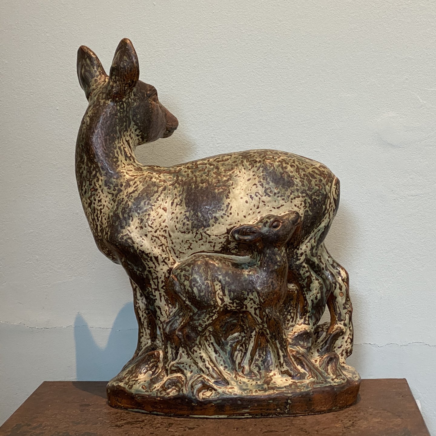 Knud Kuhn for Royal CopenhagenStone statue of a dead animal with a lamb.