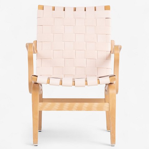 'Eva' armchair in patinated beech and new braided natural leather. Manufacturer's label.