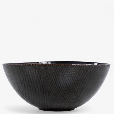 Stoneware bowl with fluted butterfly wing glaze. Signed.