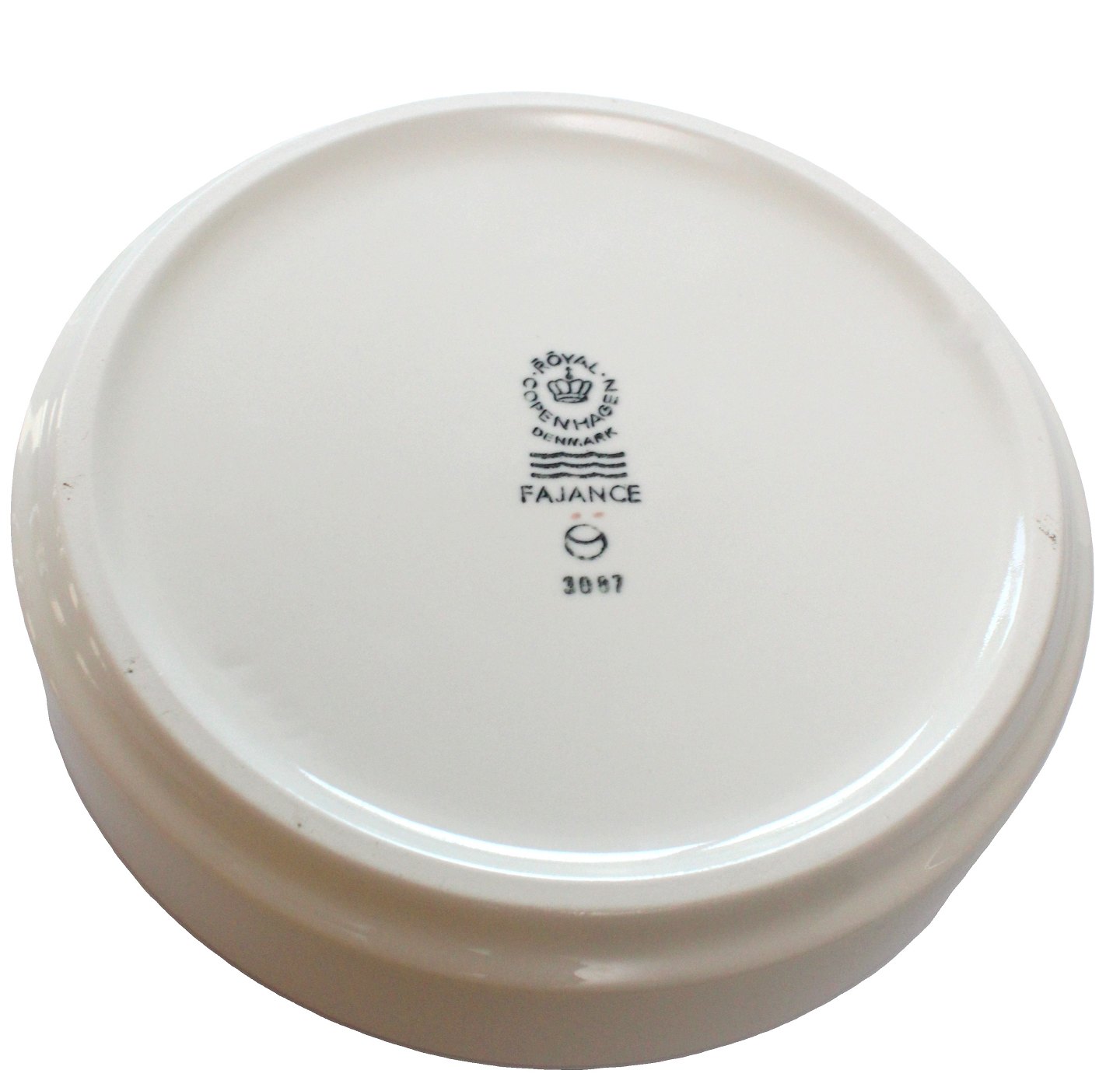 Text available in Danish: Lav skål, Assiet, Rødtop, Royal Copenhagen