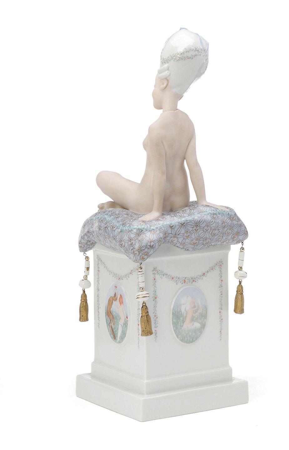 Gerhard Henning for Royal Copenhagen. Nikkedukken “ Ane Mari ” af porcelæn, dekoreret i overglasur og guld.