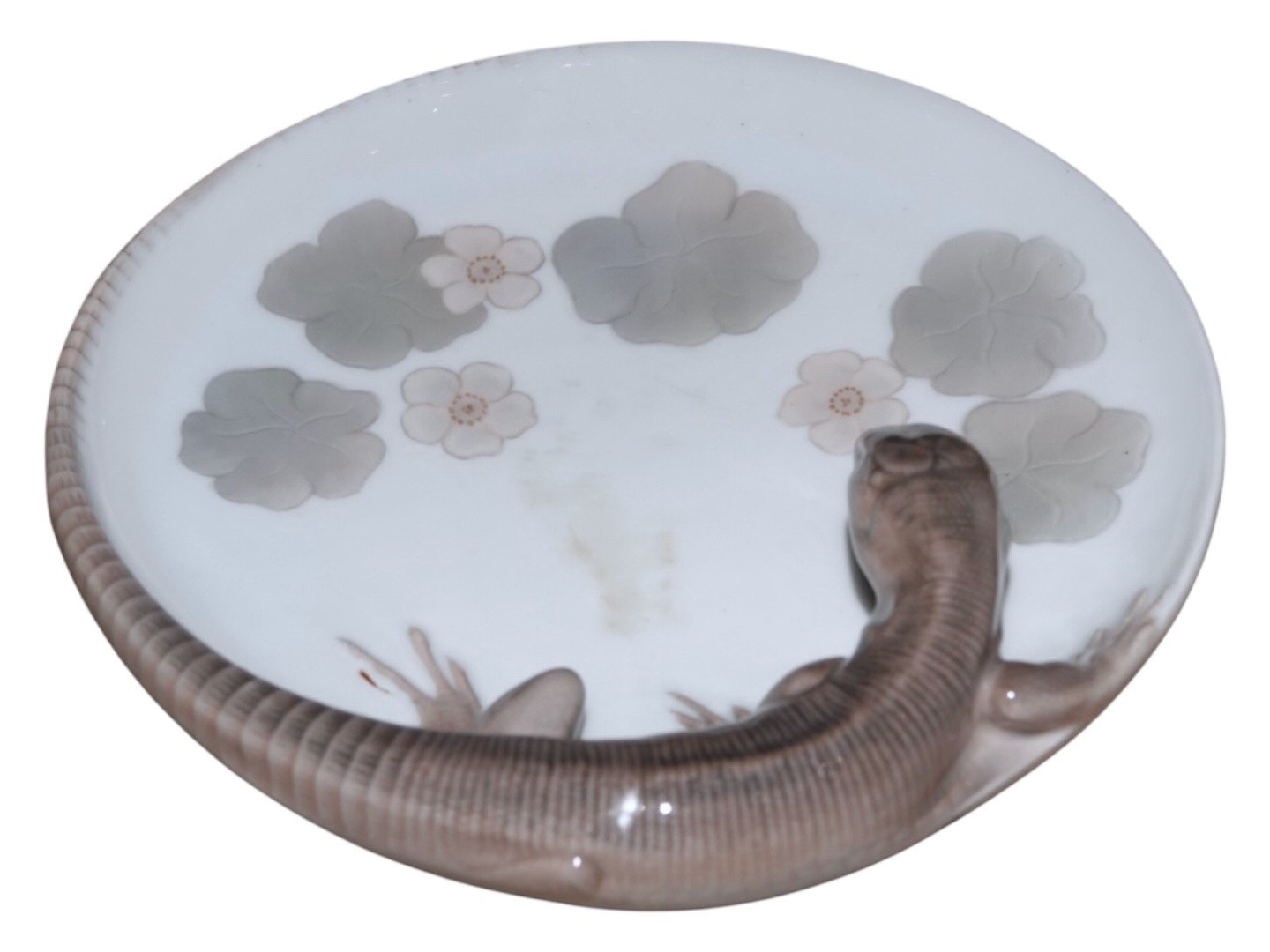 Royal Copenhagen Art Nouveau, tray with a lizard.