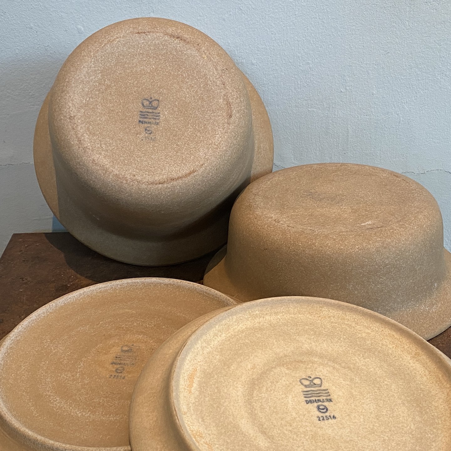 Grethe Meyer for Royal Copenhagen. Designed in 1976. The simple and timeless fire pot is in a light brown color. Made in about 1986. The large pot model 22510 & with lid model 22516 has a diameter of 21.5 cm and a height of 11 cm. Costs 800 kr. The smaller pot model 22675 with lid 22516 has a diameter of 21.5 cm and a height of 7.5 cm costs 700 kr.