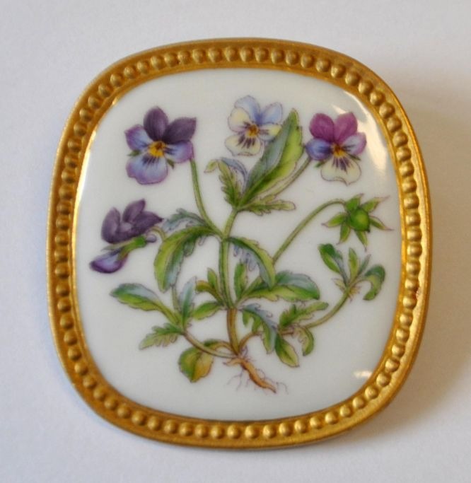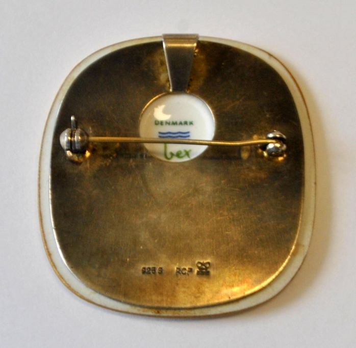 Michelsen for Royal Copenhagen. "Flora Danica" brooch / pendant in porcelain and sterling silver