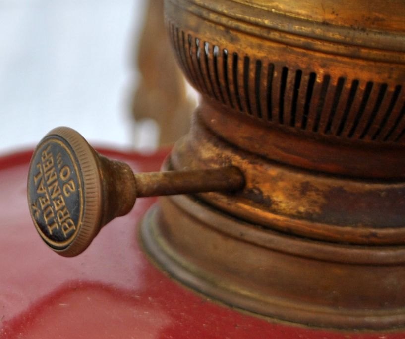 Petroleum hanging lamp with majolica, 19th century.