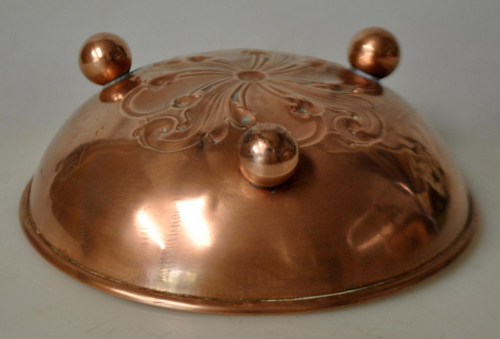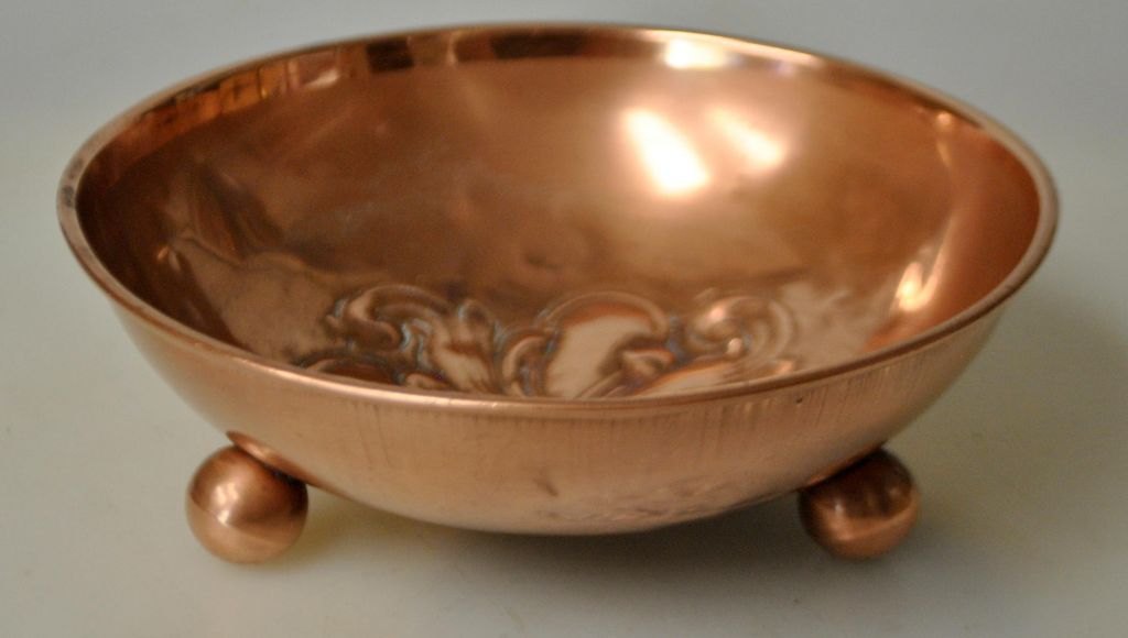 Copper bowl, 19th century. On three ball legs. With floral decoration. H: 4 cm. Dia: 13 cm.