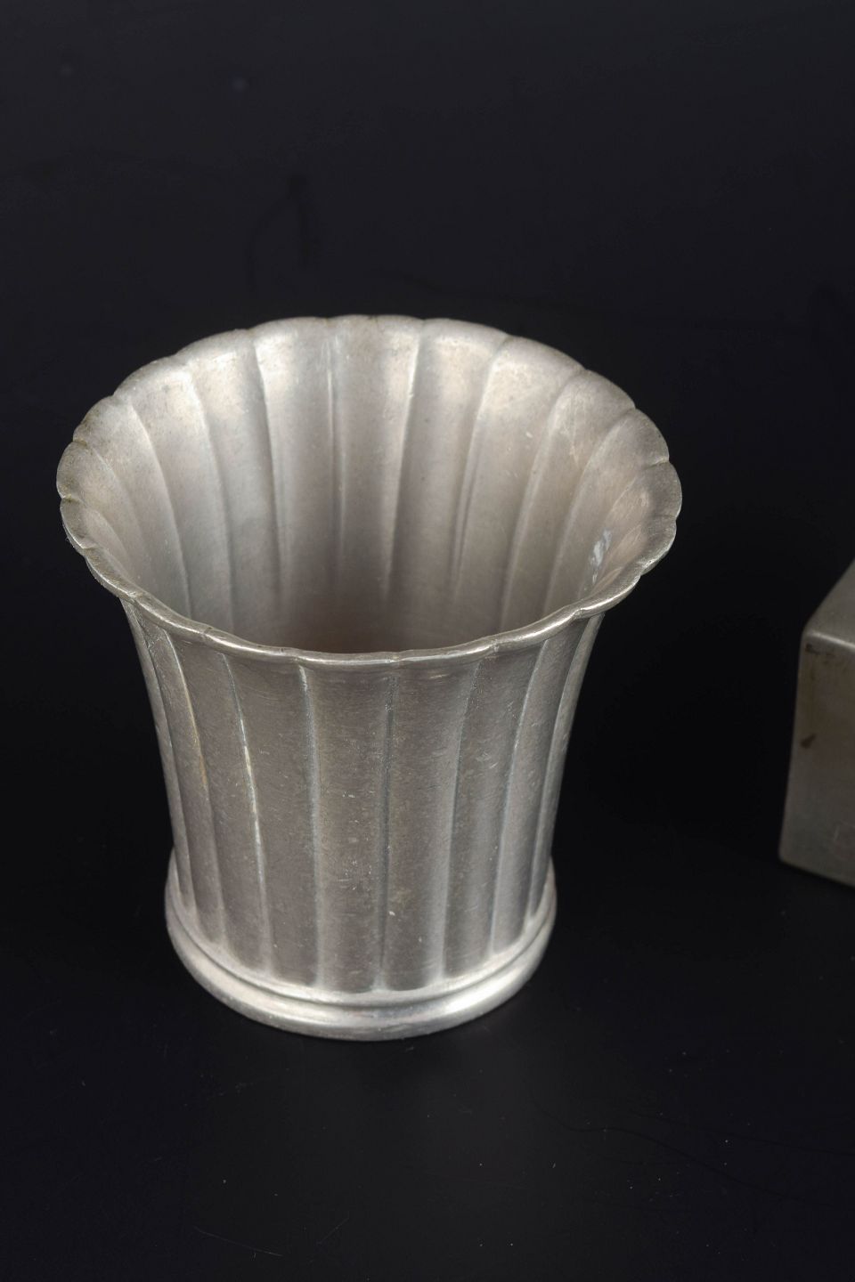 Vase model 2352 and matchbox holder in pewter, 1930s–40s.
