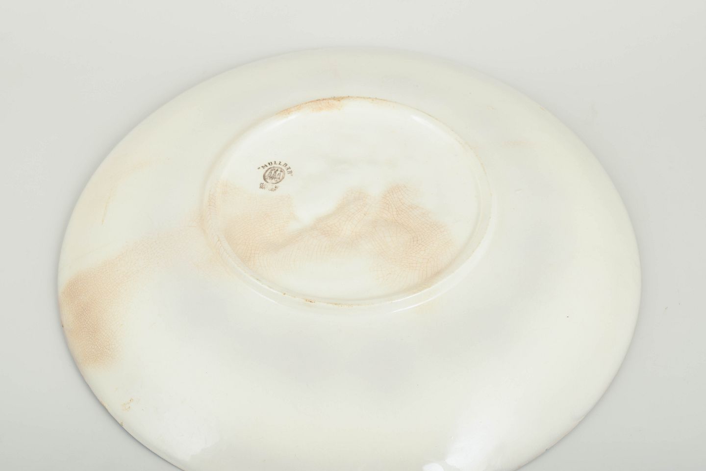 Gefle Porcelainsfabrik was founded in 1910 in Gävle, but faience production in the area dates back to the 19th century. In the late 1800s, transfer-printed and relief-decorated faience plates were highly popular, produced in large numbers for both household use and export. The “Mullbär” decoration is a typical example of the naturalistic ornamentation of the time, here enriched with classical putti motifs inspired by Renaissance and Baroque imagery.