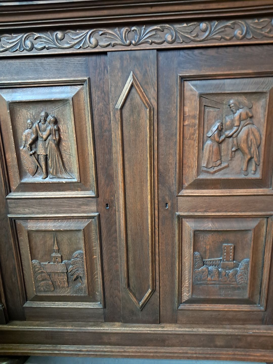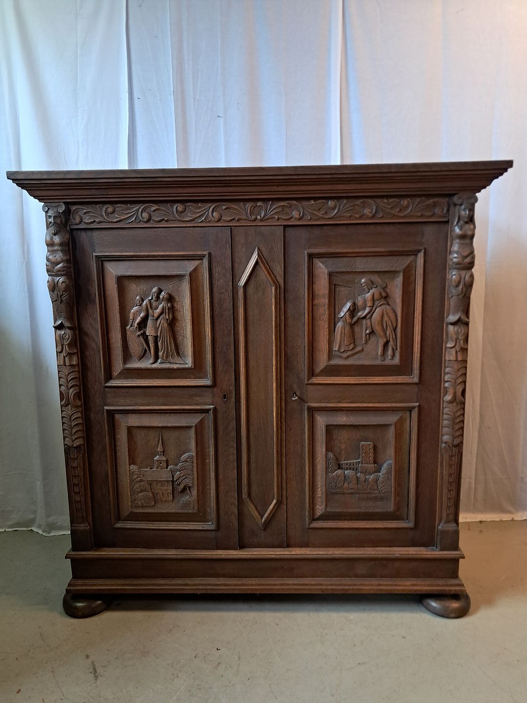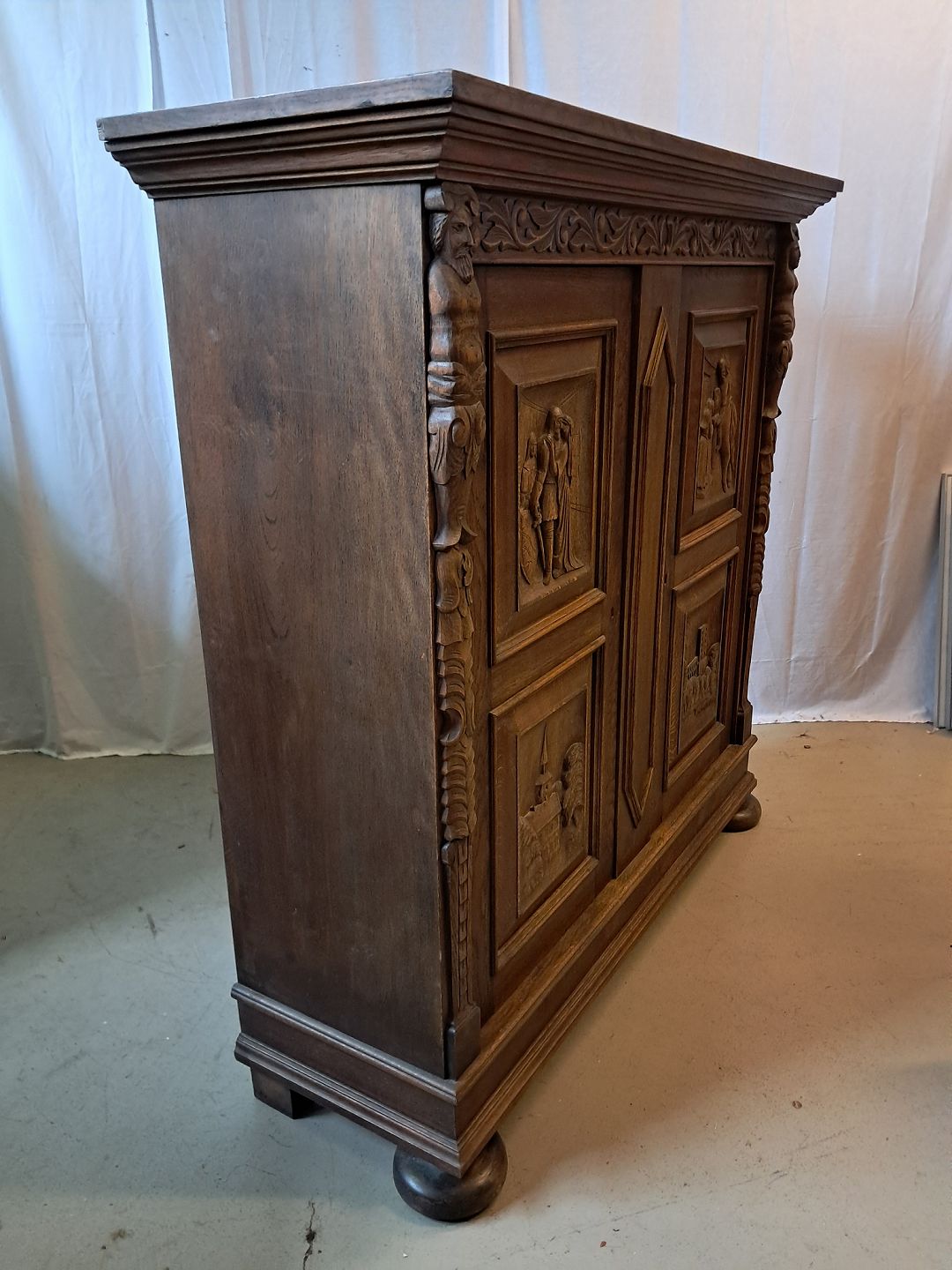 Dækketøjsskab i fineret egetræ, fra 1930erne.