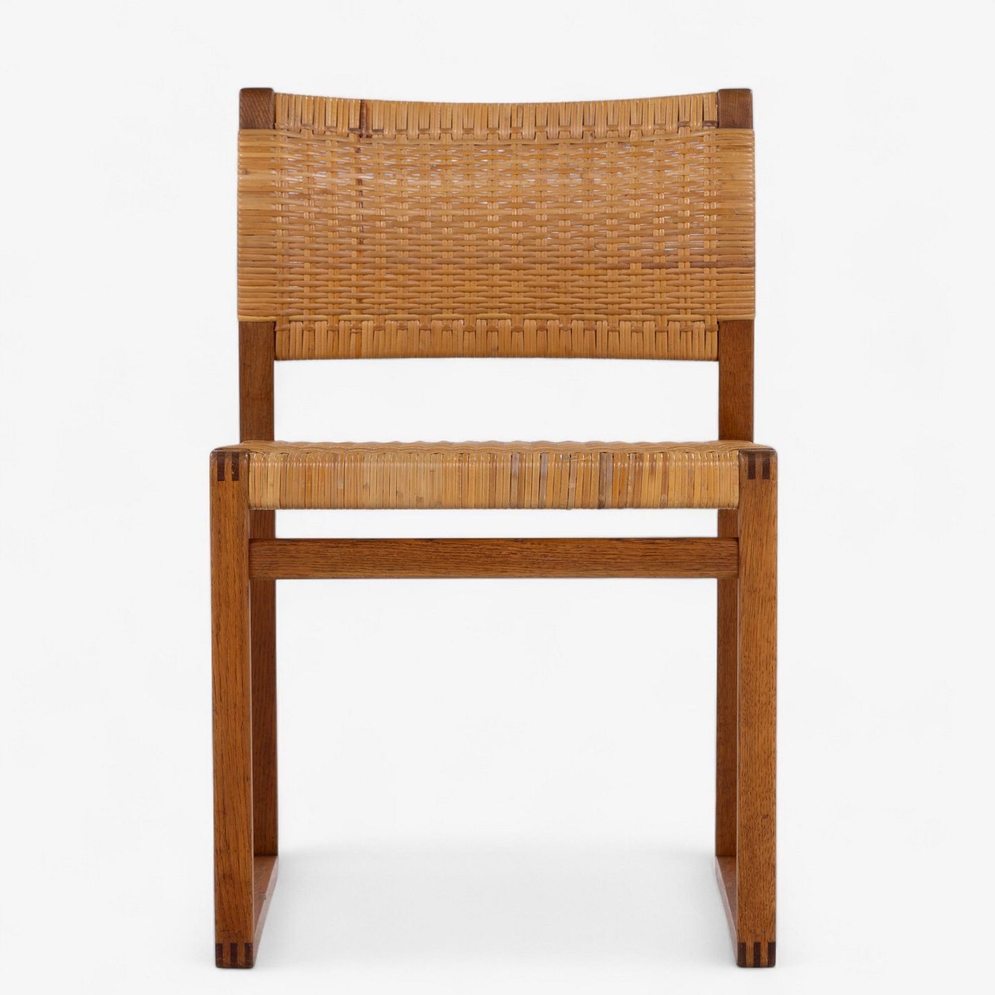 BM 61 - Set of 4 dining chairs in oak and patinated wicker.