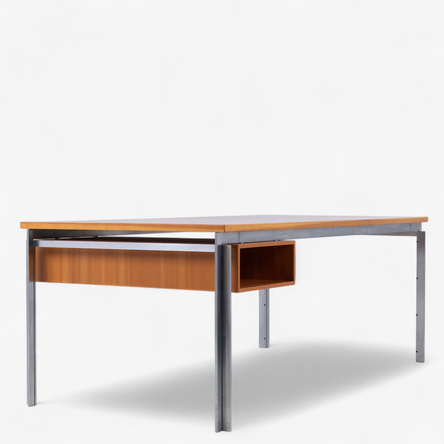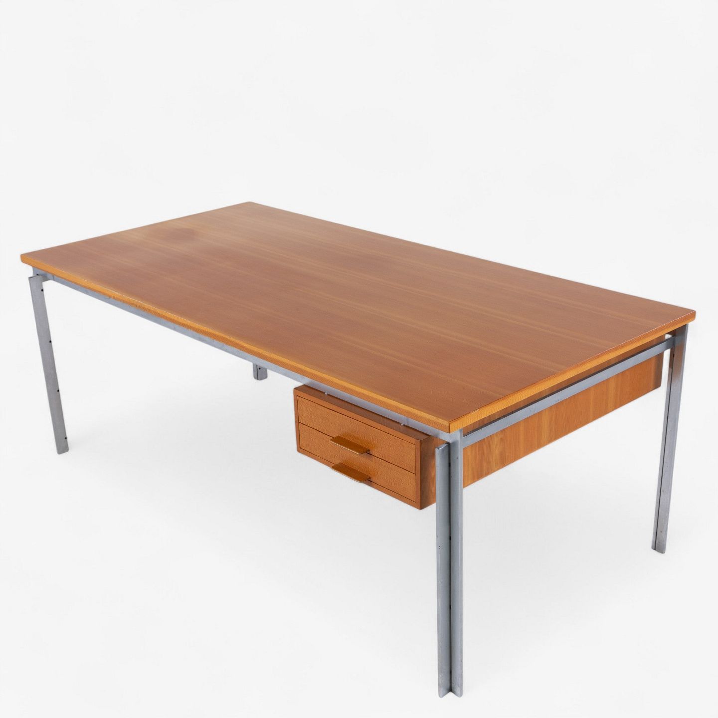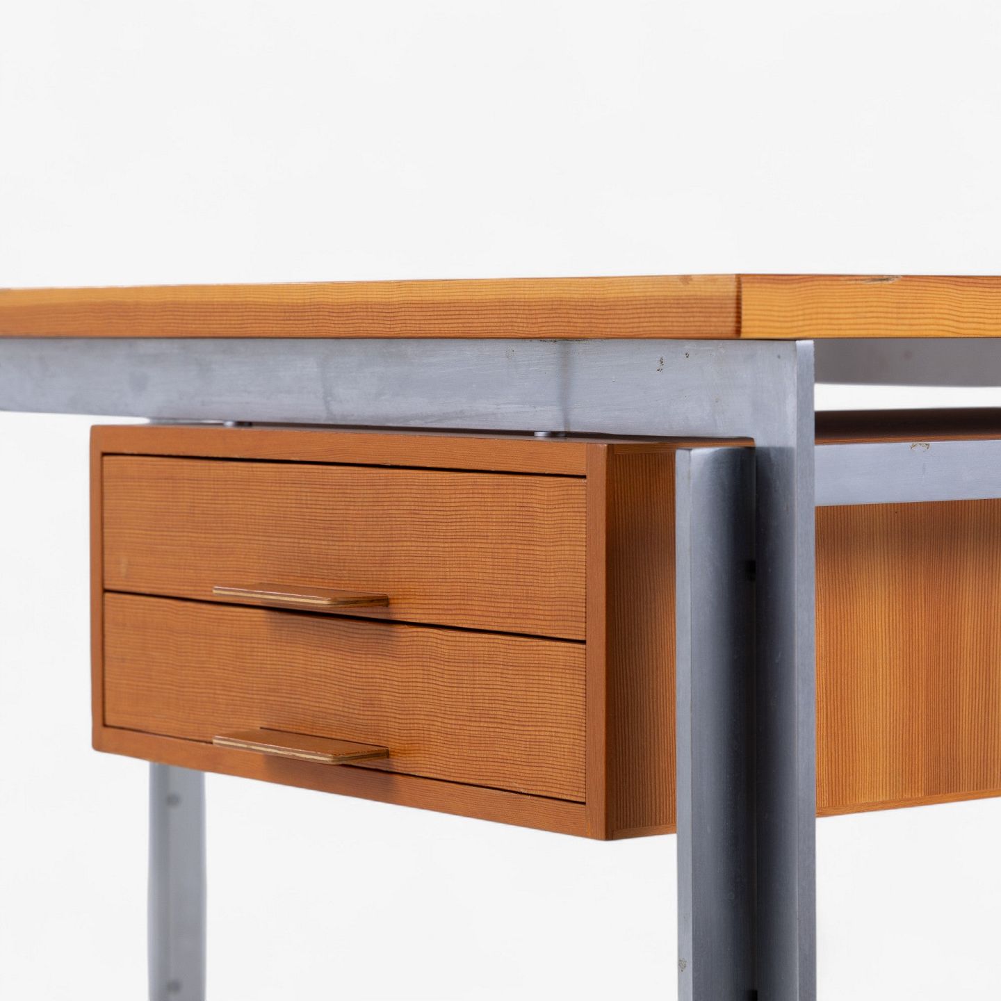 PK 55 - Work table/desk with top and drawer module in Oregon pine and steel frame. From 1985. Manufacturer's mark.