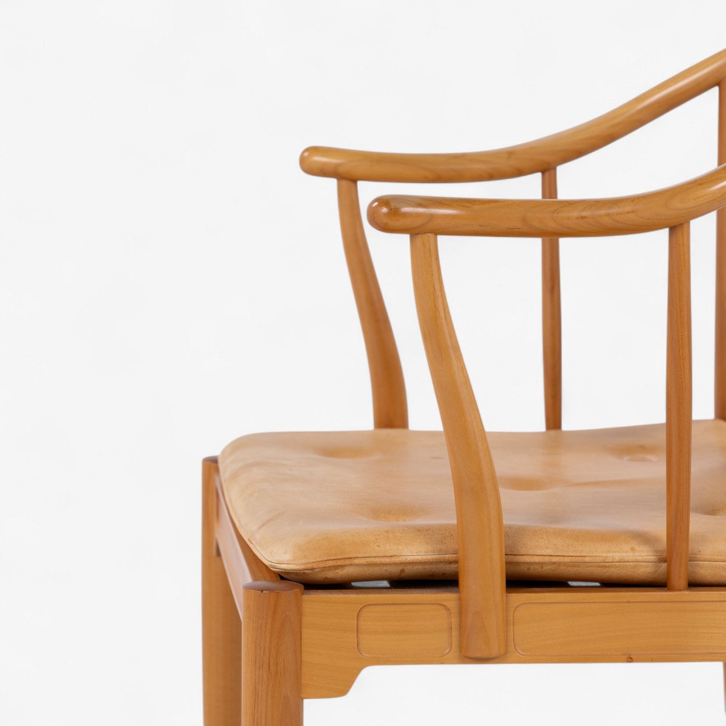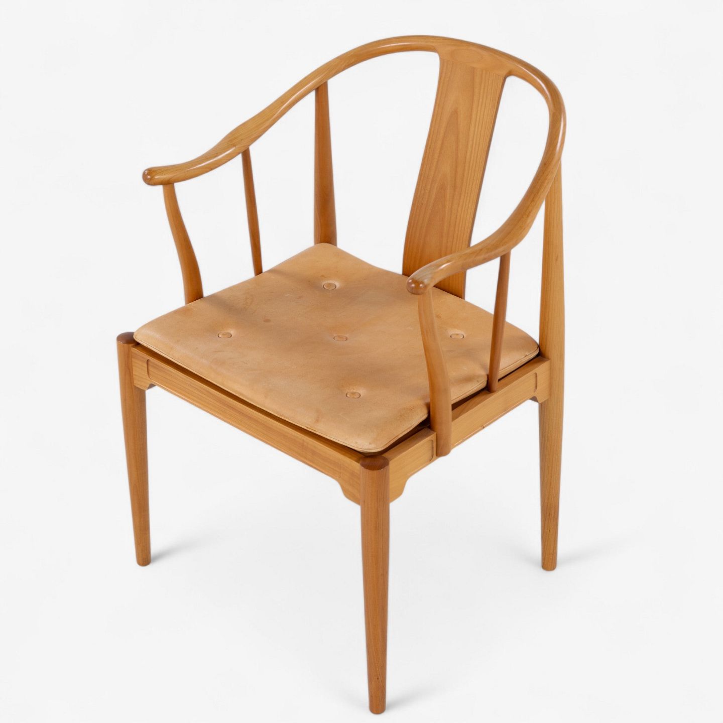 FH 4283 - Chinese chair in cherry with cushion in patinated natural leather. Manufacturer's mark.