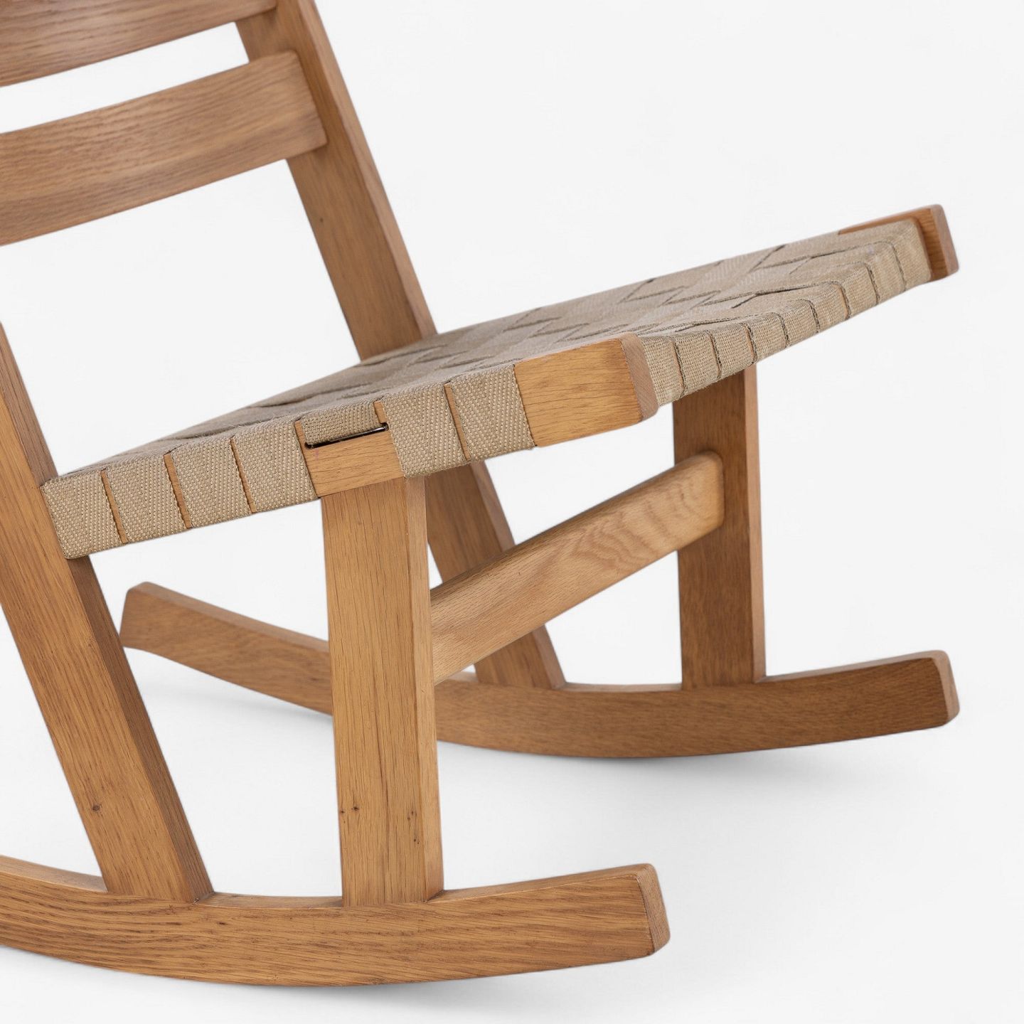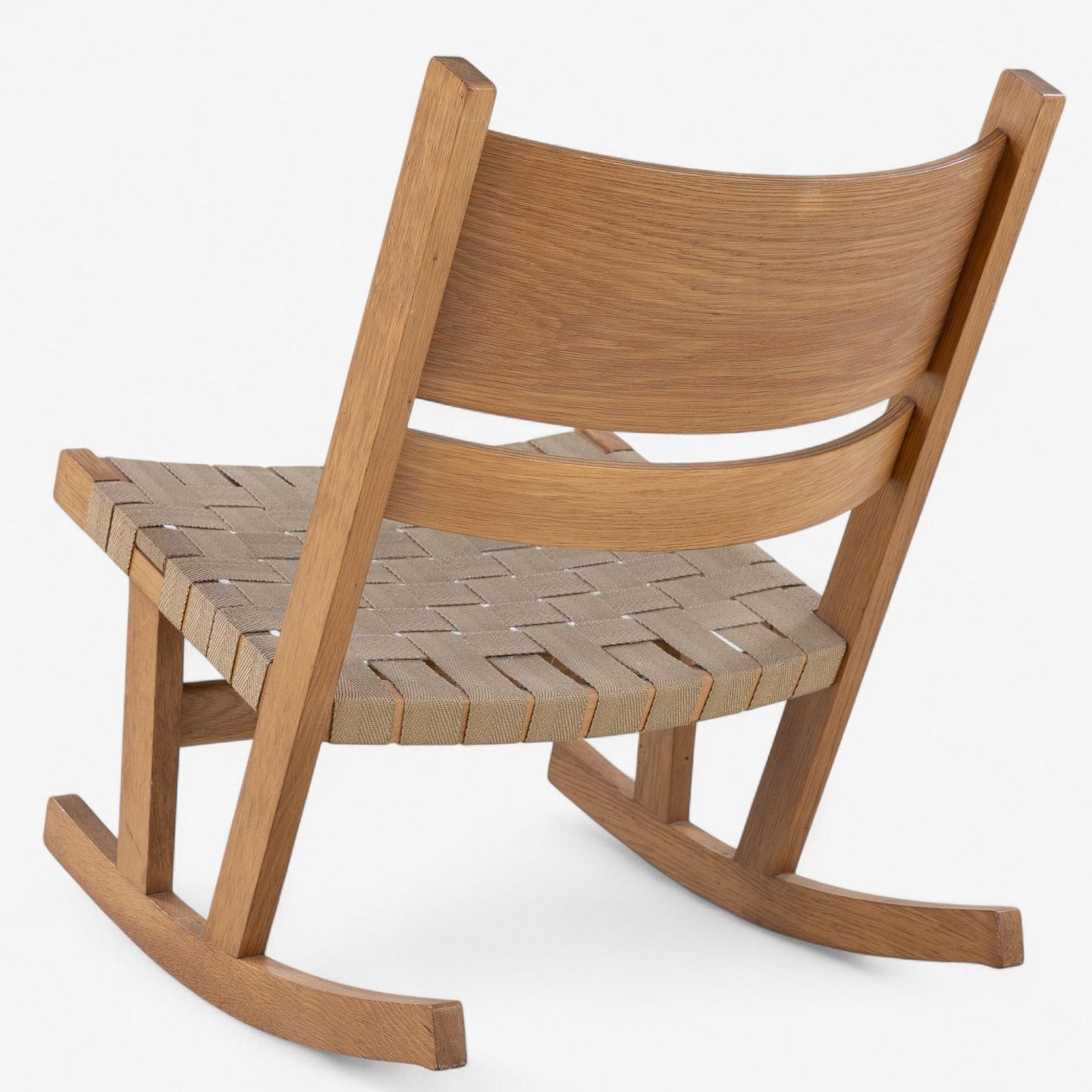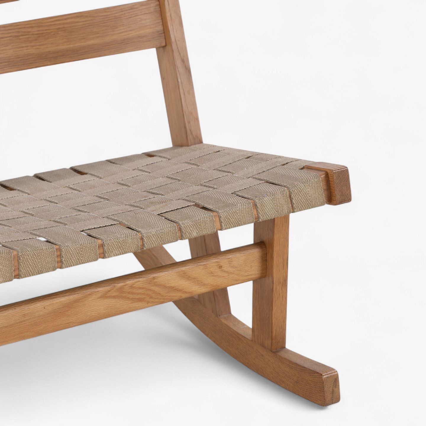 GE 674 - Rocking chair with oak frame and seat with patinated straps.