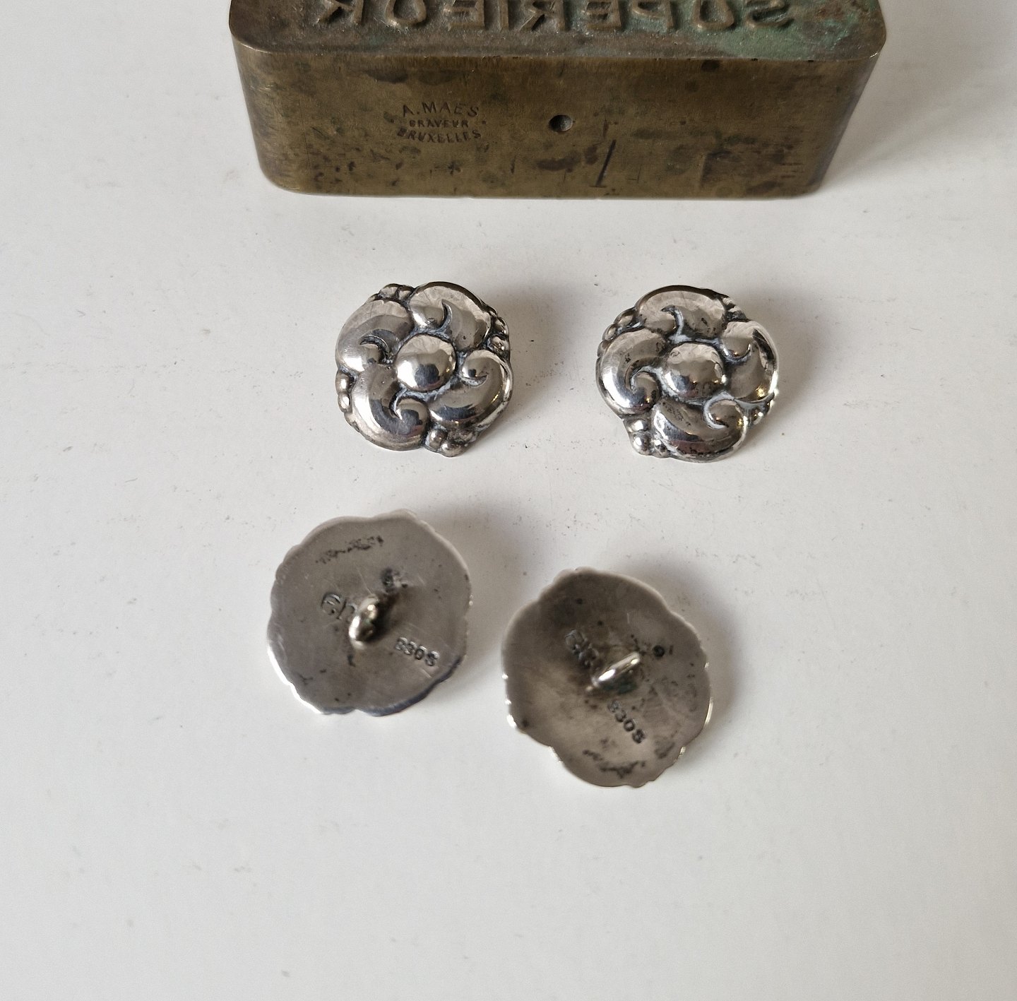 Evald Nielsen set of four silver buttons in the art nouveau style.