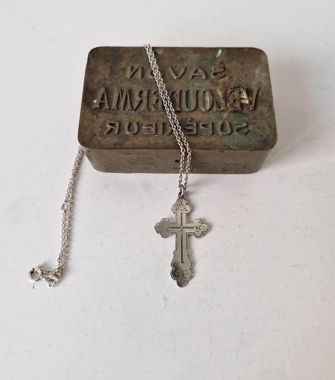 The cross itself is stamped 813L. The chain is stamped 830s. Measurements of the cross 2.3 x 4 cm.