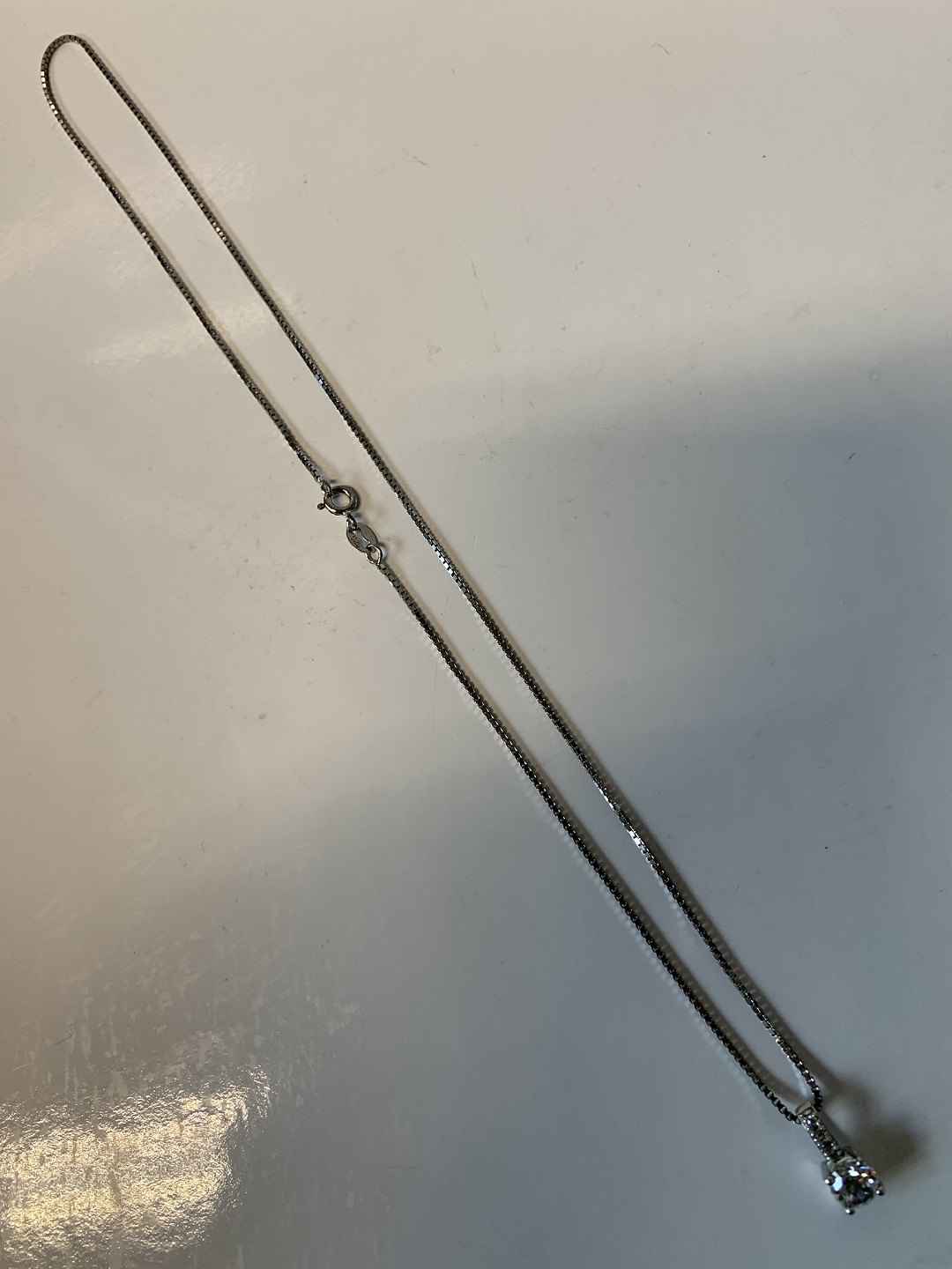 Silver necklace with pendant in clear stones