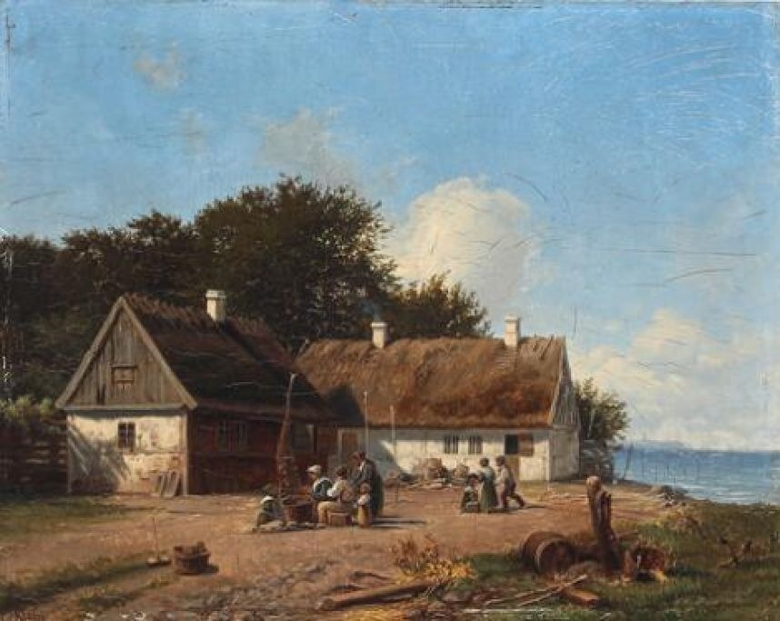 Klein, Peter Gabriel (1824 - 1859) Denmark: Coastal scene with farmhouse.