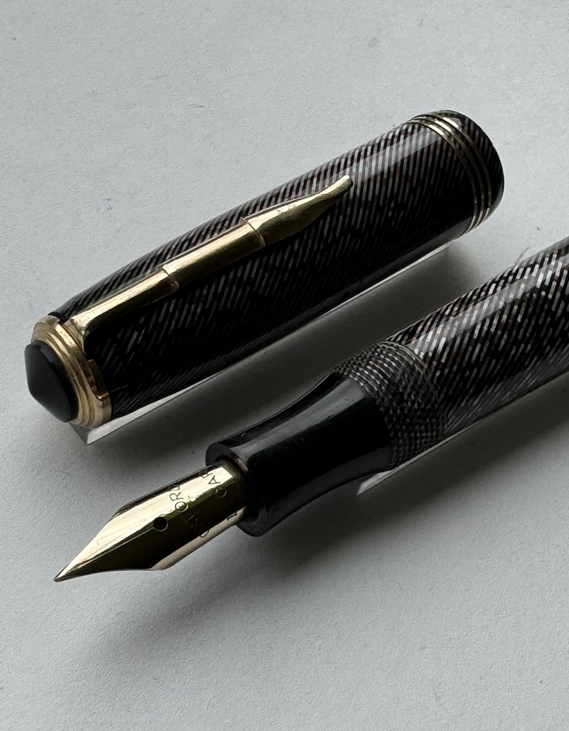 Sheffield Silver and green spiral striped fountain pen