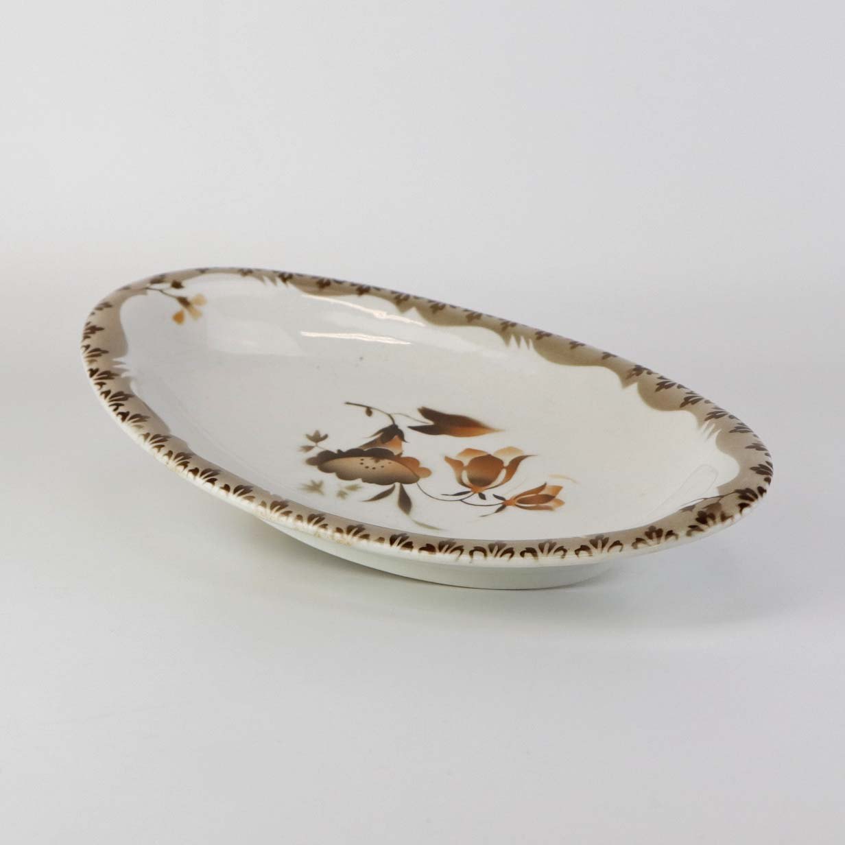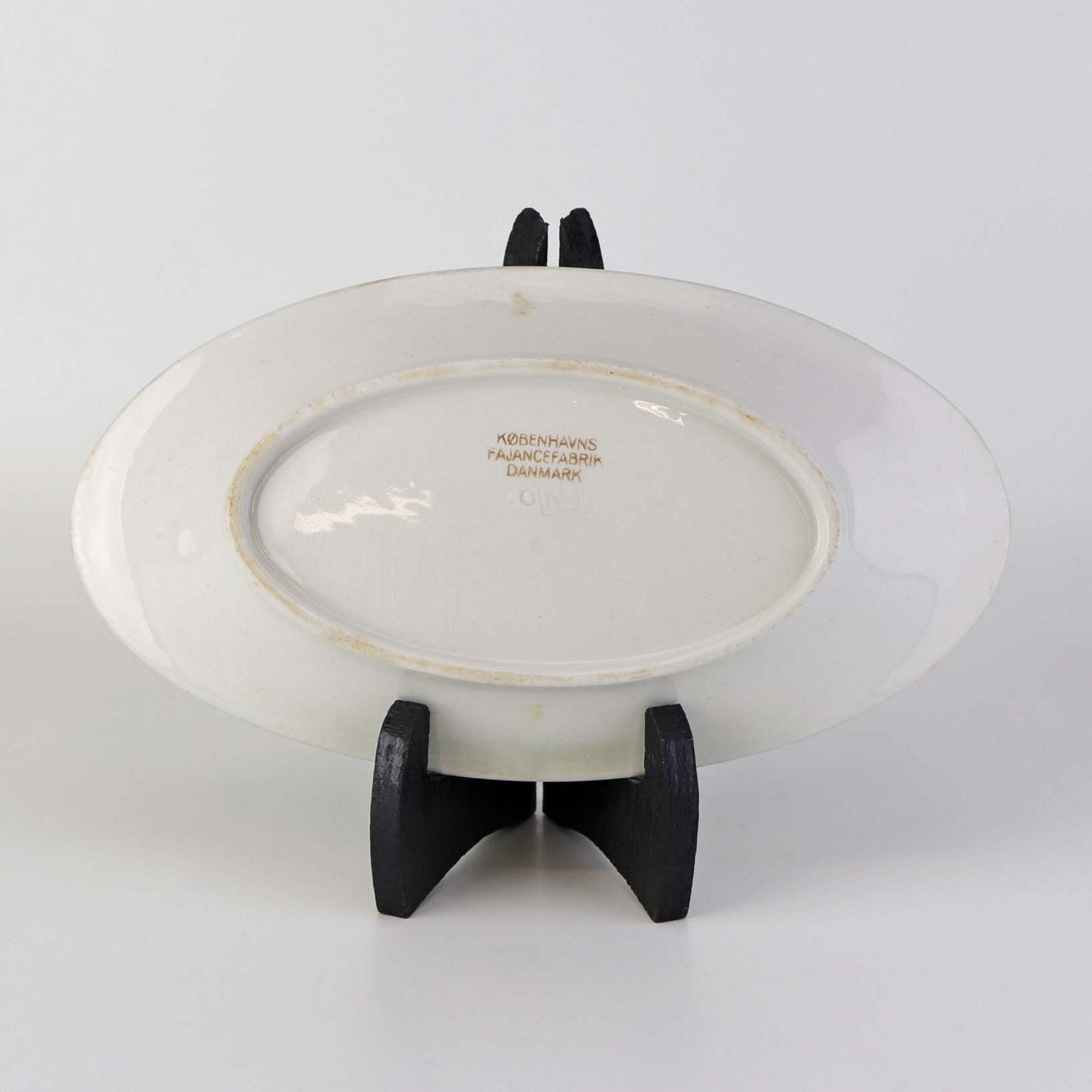 Text available in Danish: Lille ovalt fad i fajance fra stellet Convolvulus Snerle.