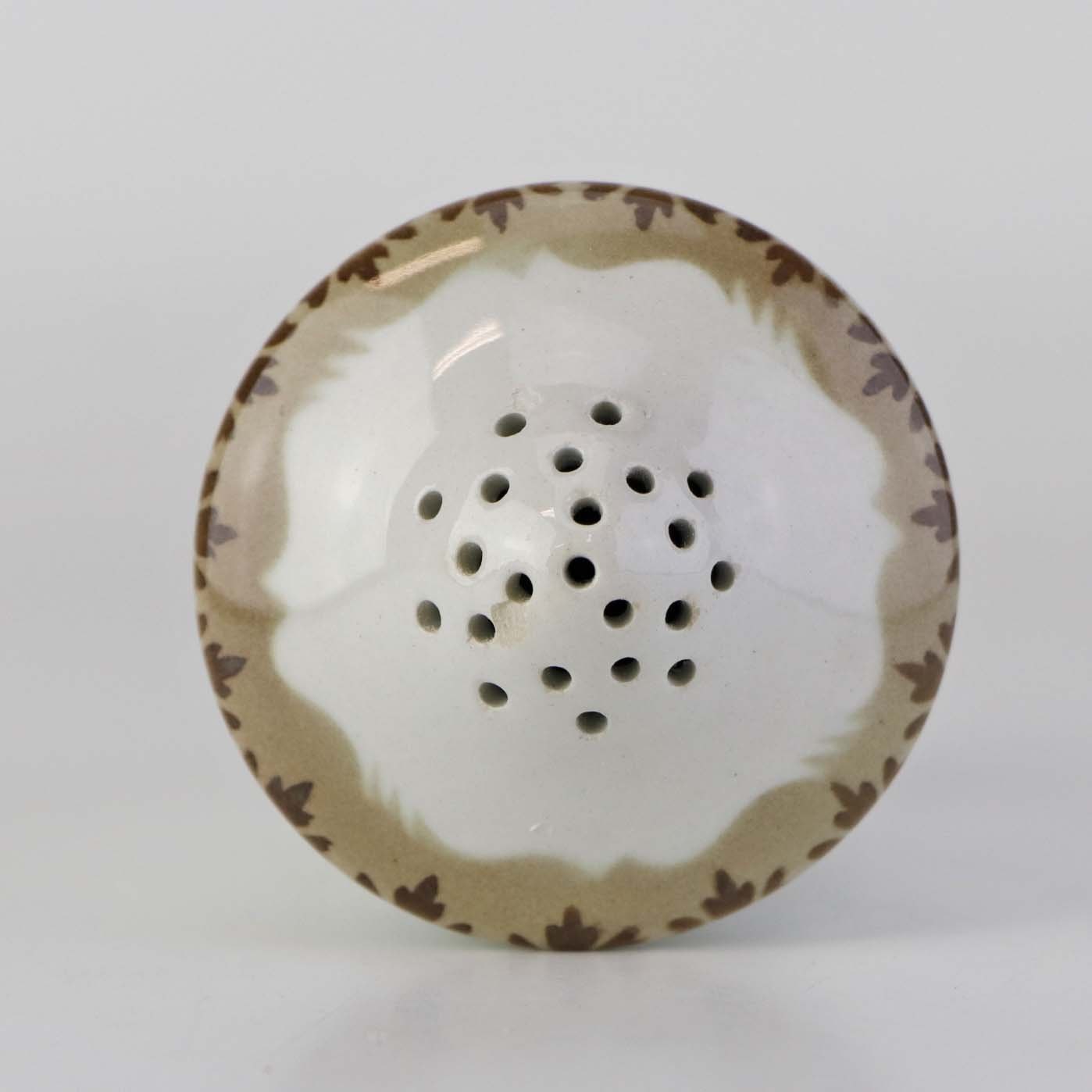 Fremstår med mørkninger under glasuren samt et mindre nøk på toppen af saltbøssen.