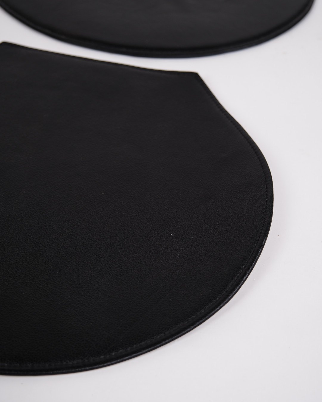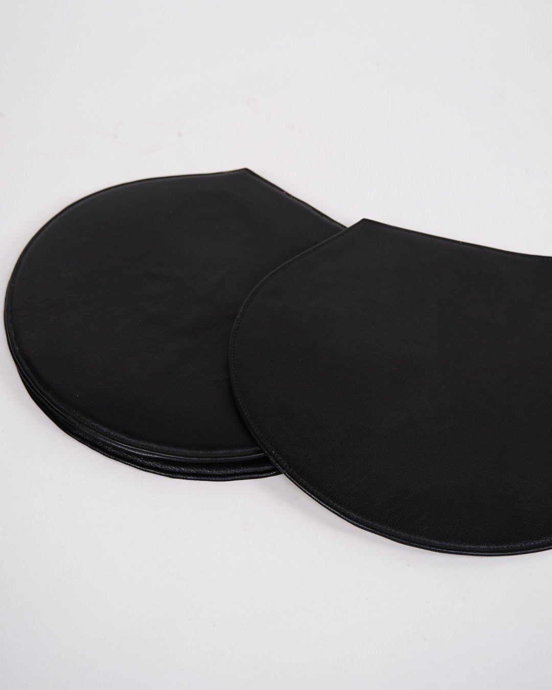 Set of four black leather cushions for Arne Jacobsen chair model 3107. Fit design. Comfortable and stylish accessory for Danish design classic.