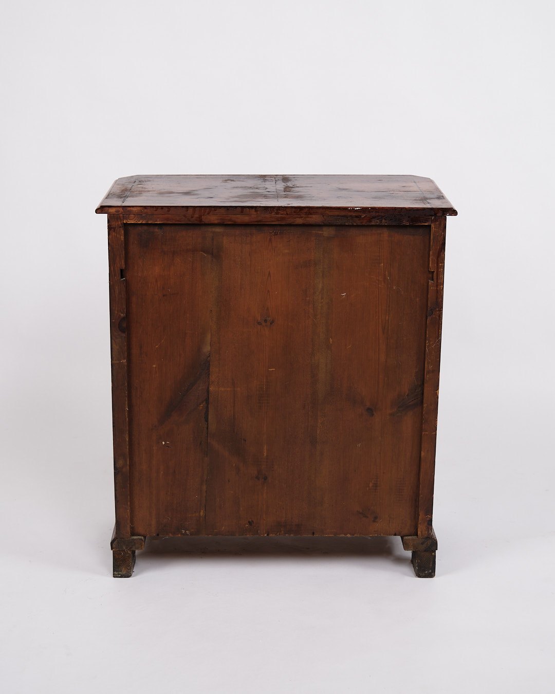 Small antique console/hallway cabinet from the 1880s. Mahogany and walnut with round legs.