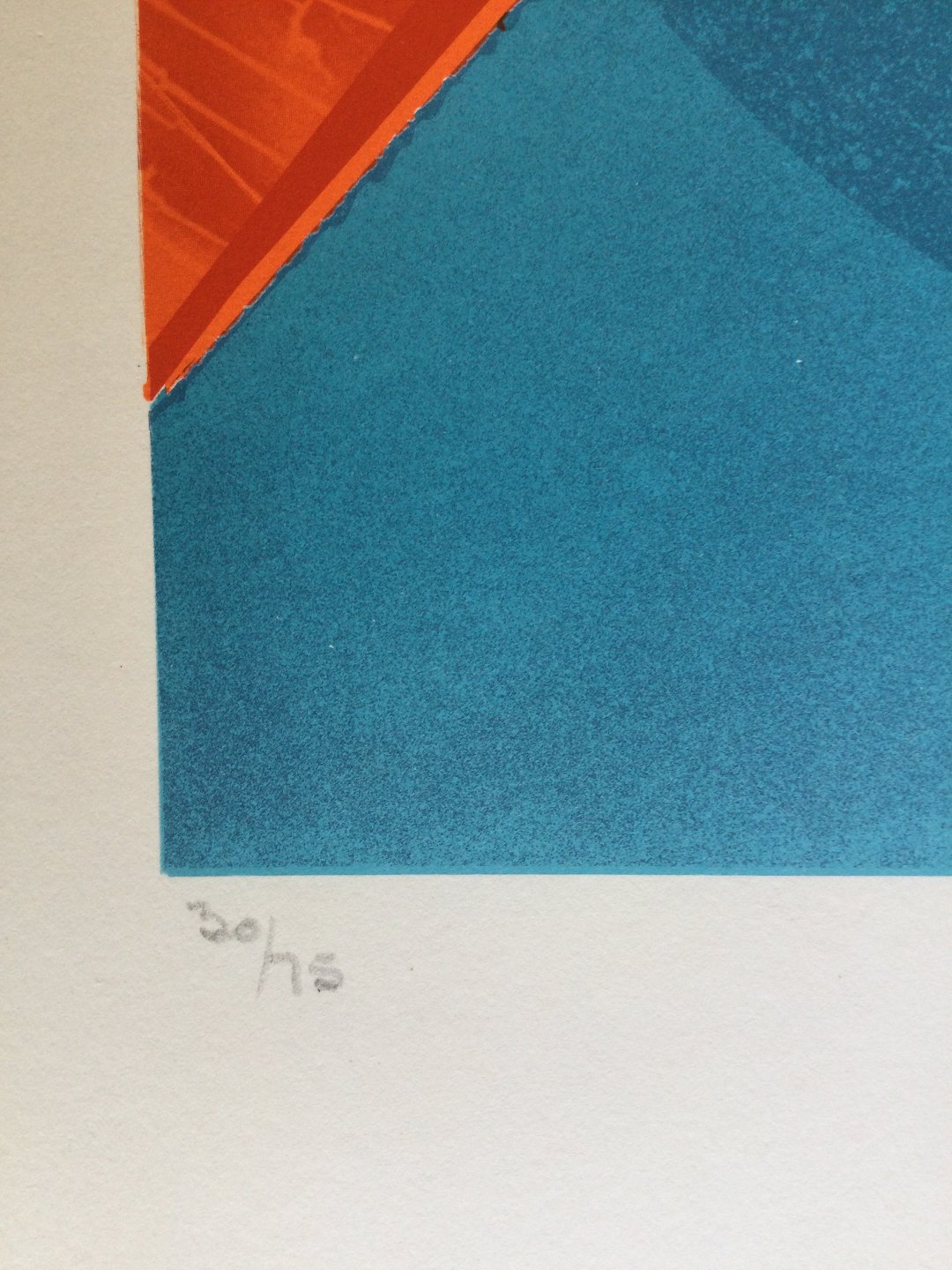 Farvelitografi af Finn Lohmann - Komposition 1976.