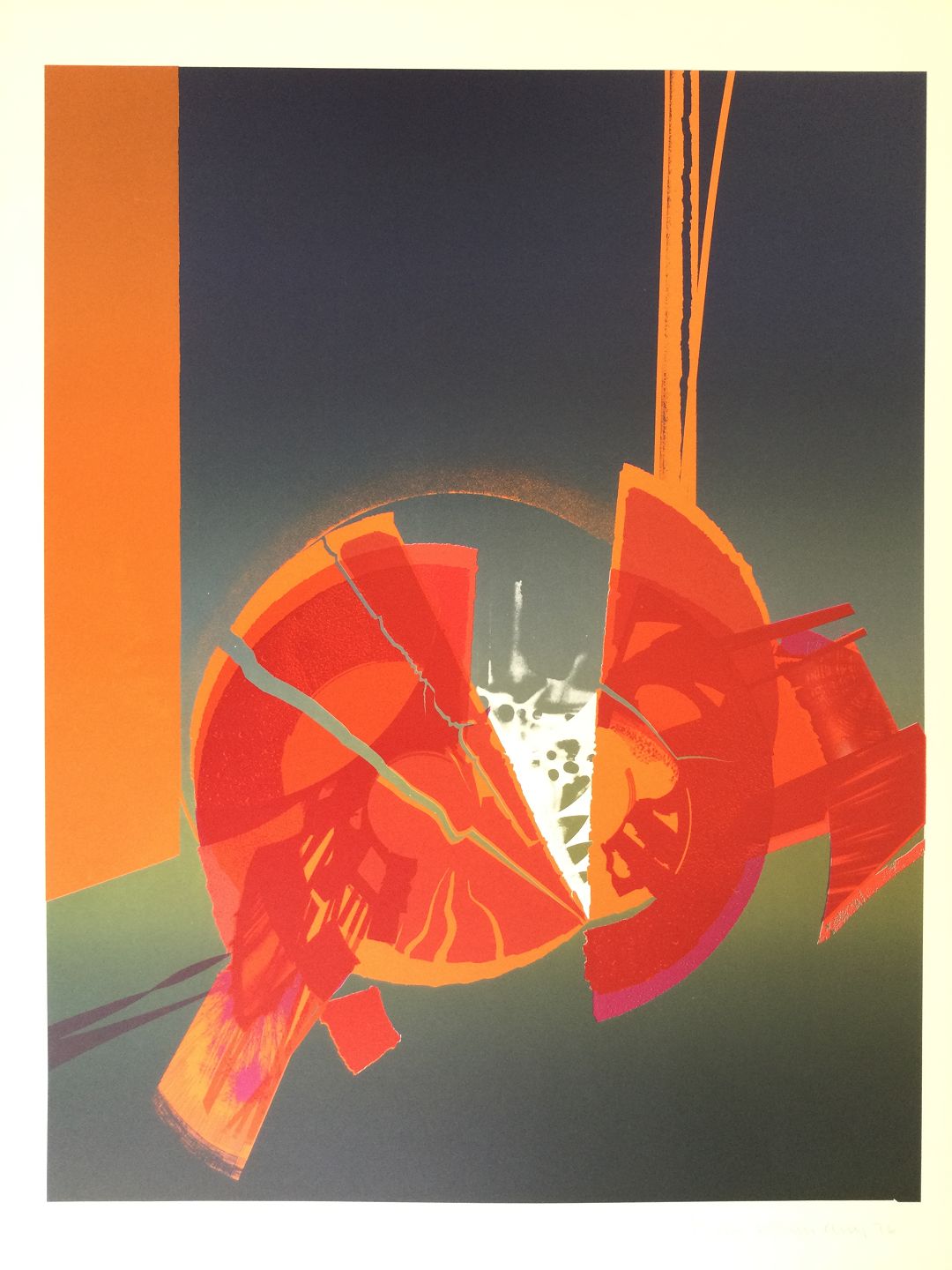 Text available in Danish: Farvelitografi af Finn Lohmann - Komposition 1976.