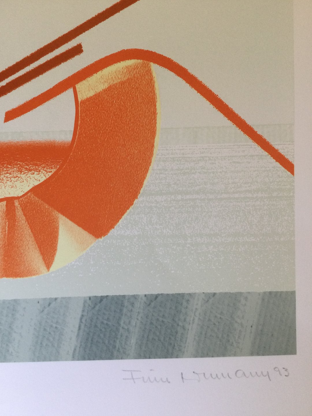Text available in Danish: Farvelitografi af Finn Lohmann - Komposition 1993.