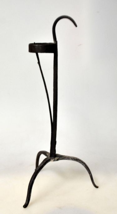 Baroque clamp candlestick, 18th century. Denmark. Made of iron. On three legs. H.: 25.5 cm.