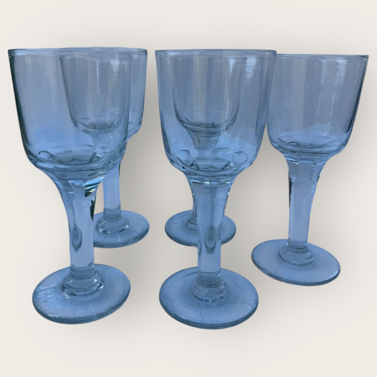 5 large older glasses with cut stems