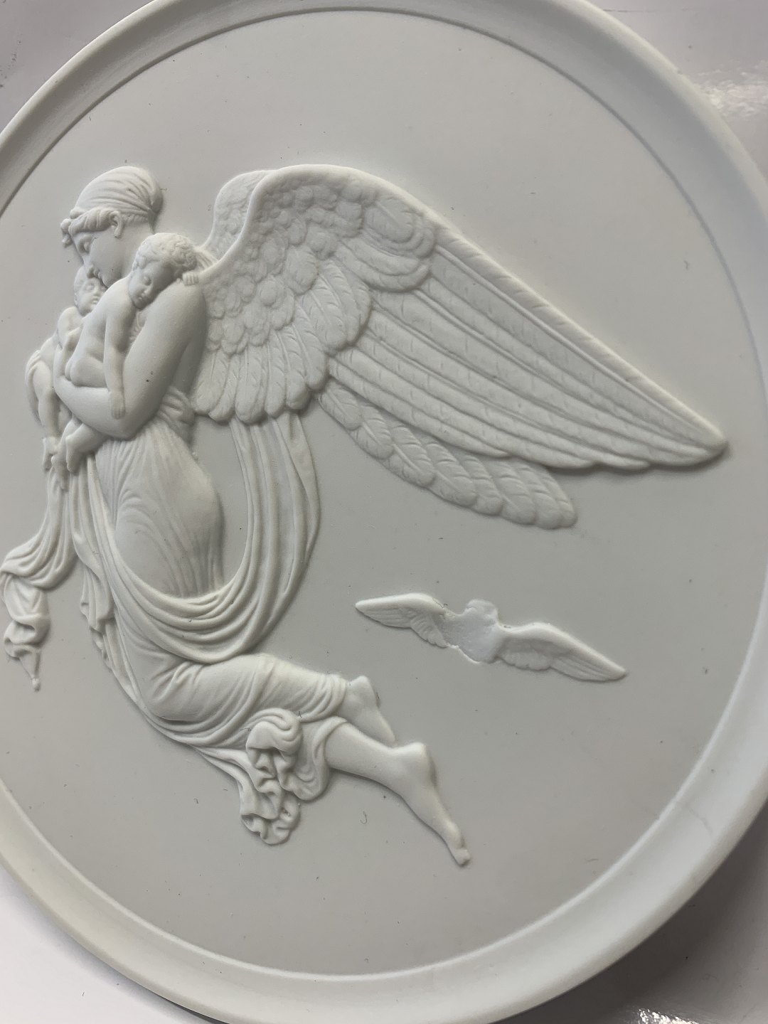 Royal Copenhagen Bisquit plate by Thorvaldsen, night.