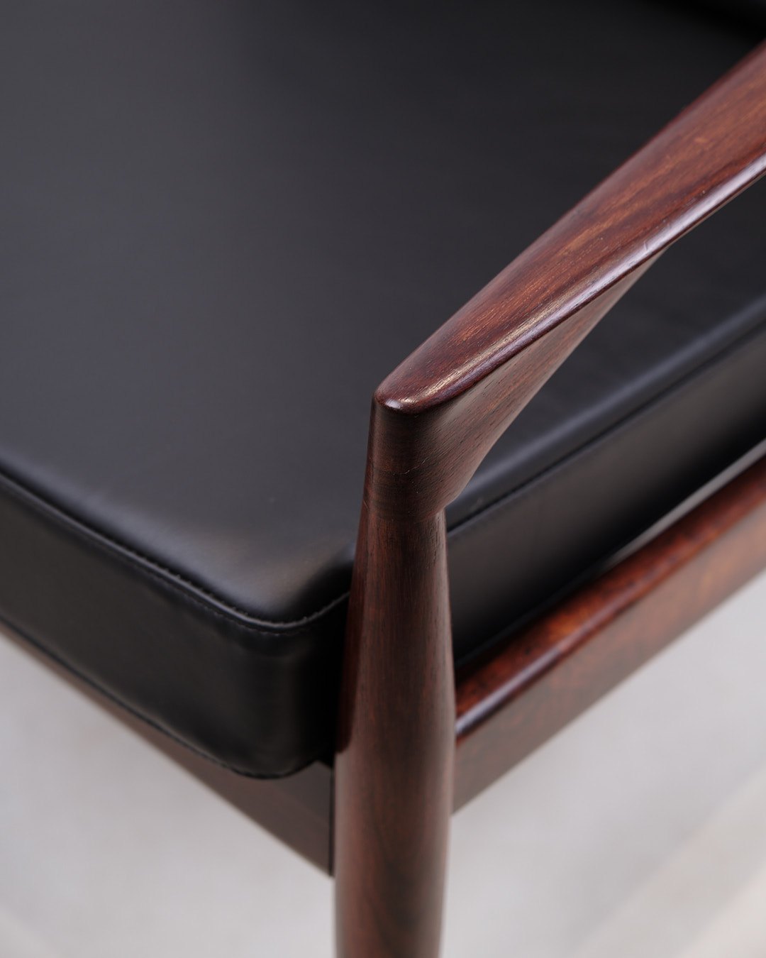 Kai Kristiansen “Paper Knife Chair”, model 121. Rosewood and black leather. Produced by Magnus Olesen, 1950s.