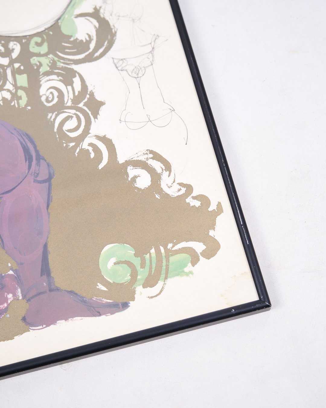 Lithographic Print In Black Frame - Signed By Bjørn Wiinblad