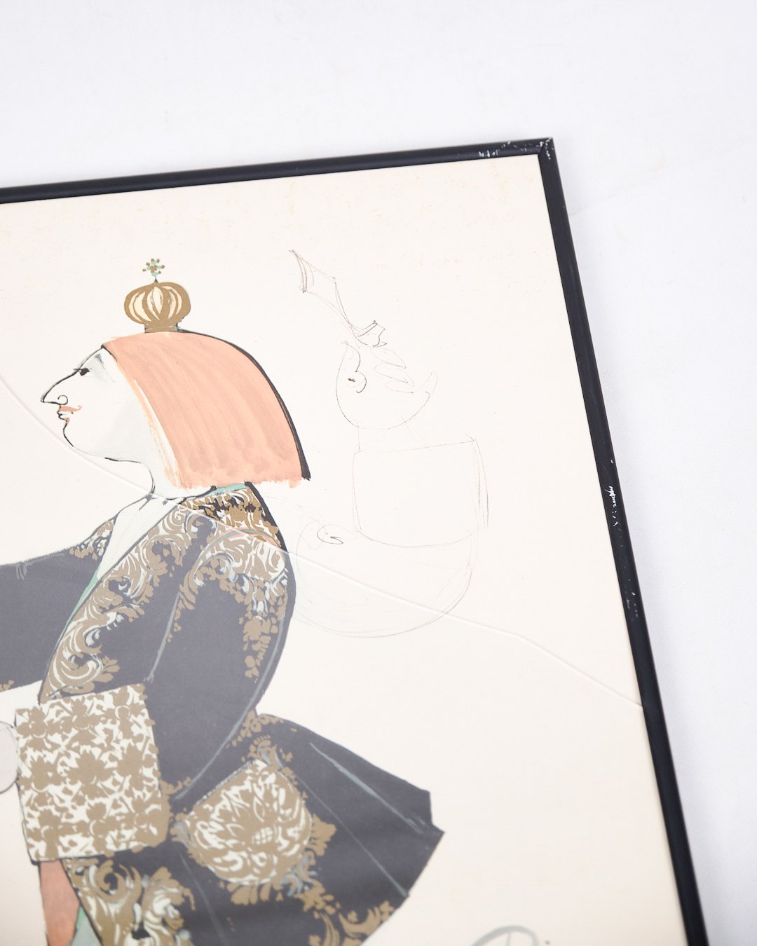 Lithographic Print In Black Frame - Signed By Bjørn Wiinblad