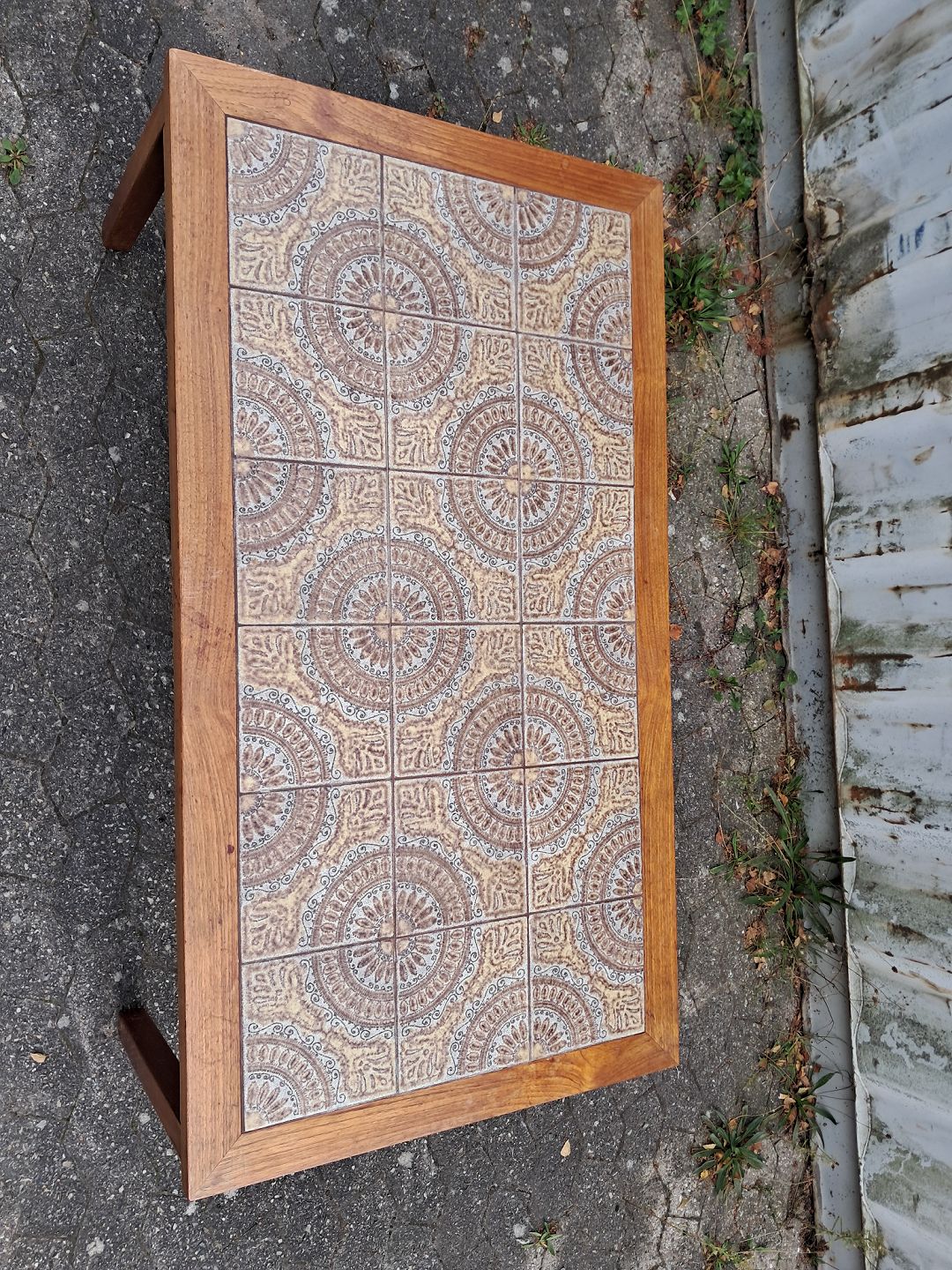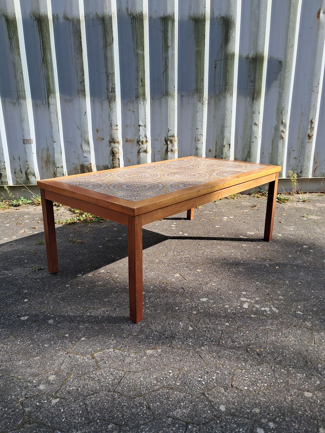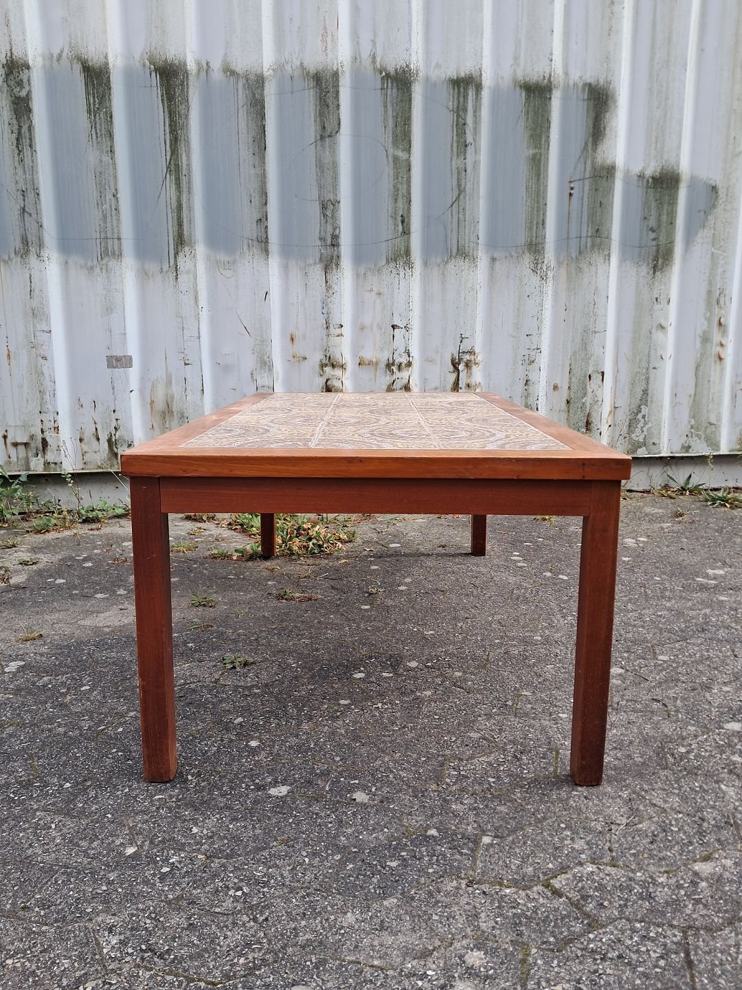 Kakkel sofabord i fineret teaktræ, fra 1960erne.