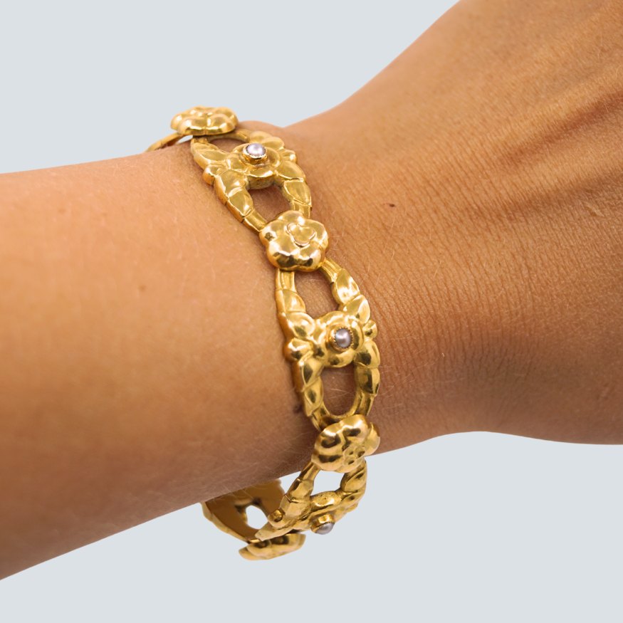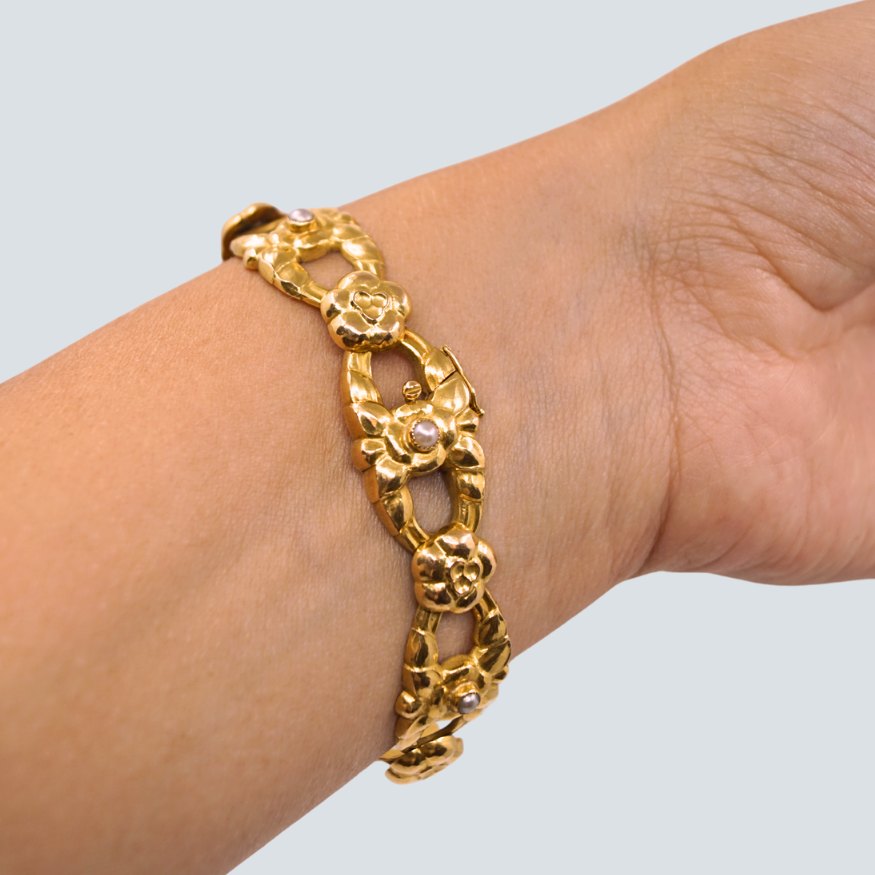 Early Georg Jensen bracelet, from 1930, in 18k gold, set with small pearls. Clasp with safetycatch.