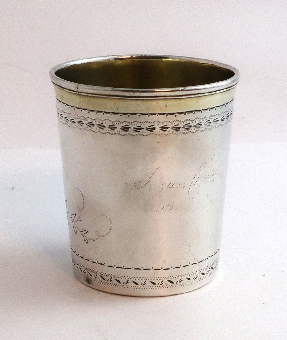 Lorenz Christophersen Linde, born in Bergen. Copenhagen after 1786 and died 1809. Silver goblet with gilding. Height 7.6 cm. Diameter 7 cm.