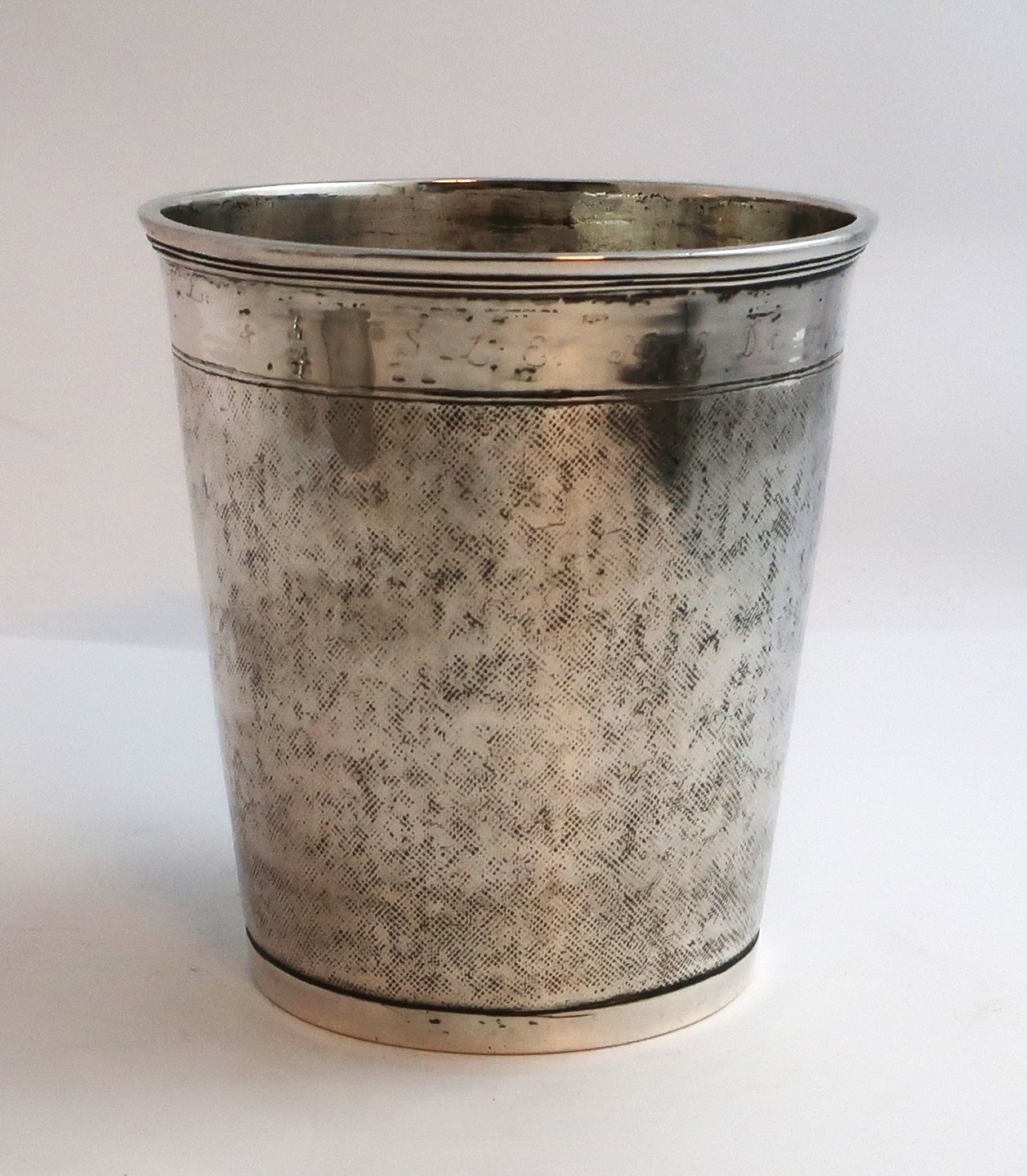 Large silver goblet. Silver master unknown. Engraving from 1756. Height 11 cm. Diameter 10 cm.