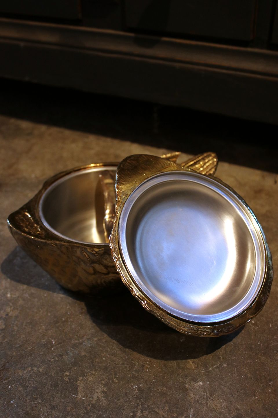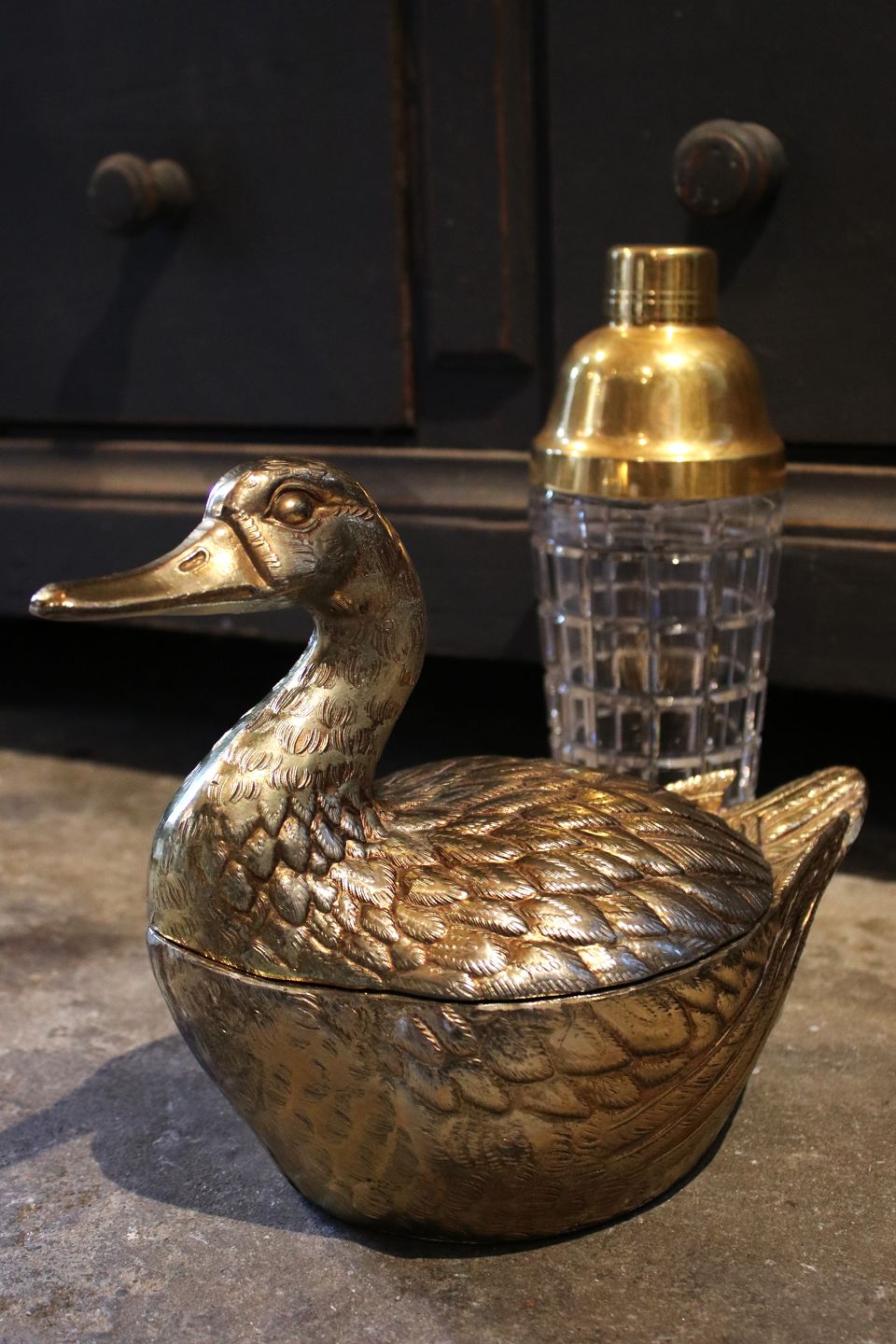 Delicious Italian ice bucket designed by Mauro Manetti in the shape of a duck in gilded pewter from the 60s...