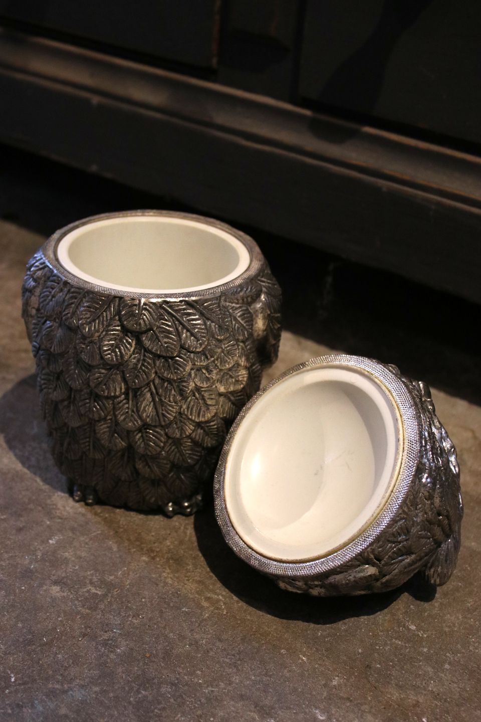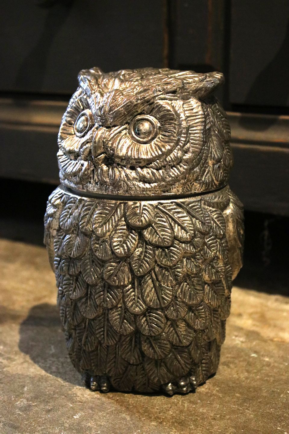 Delicious Italian ice bucket designed by Mauro Manetti in the shape of an owl, silver-plated tin from the 60s...
