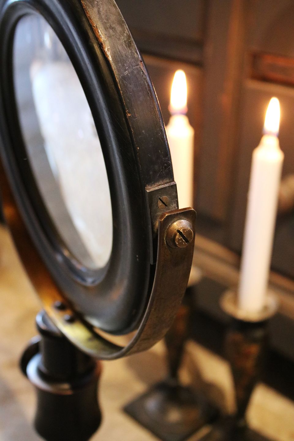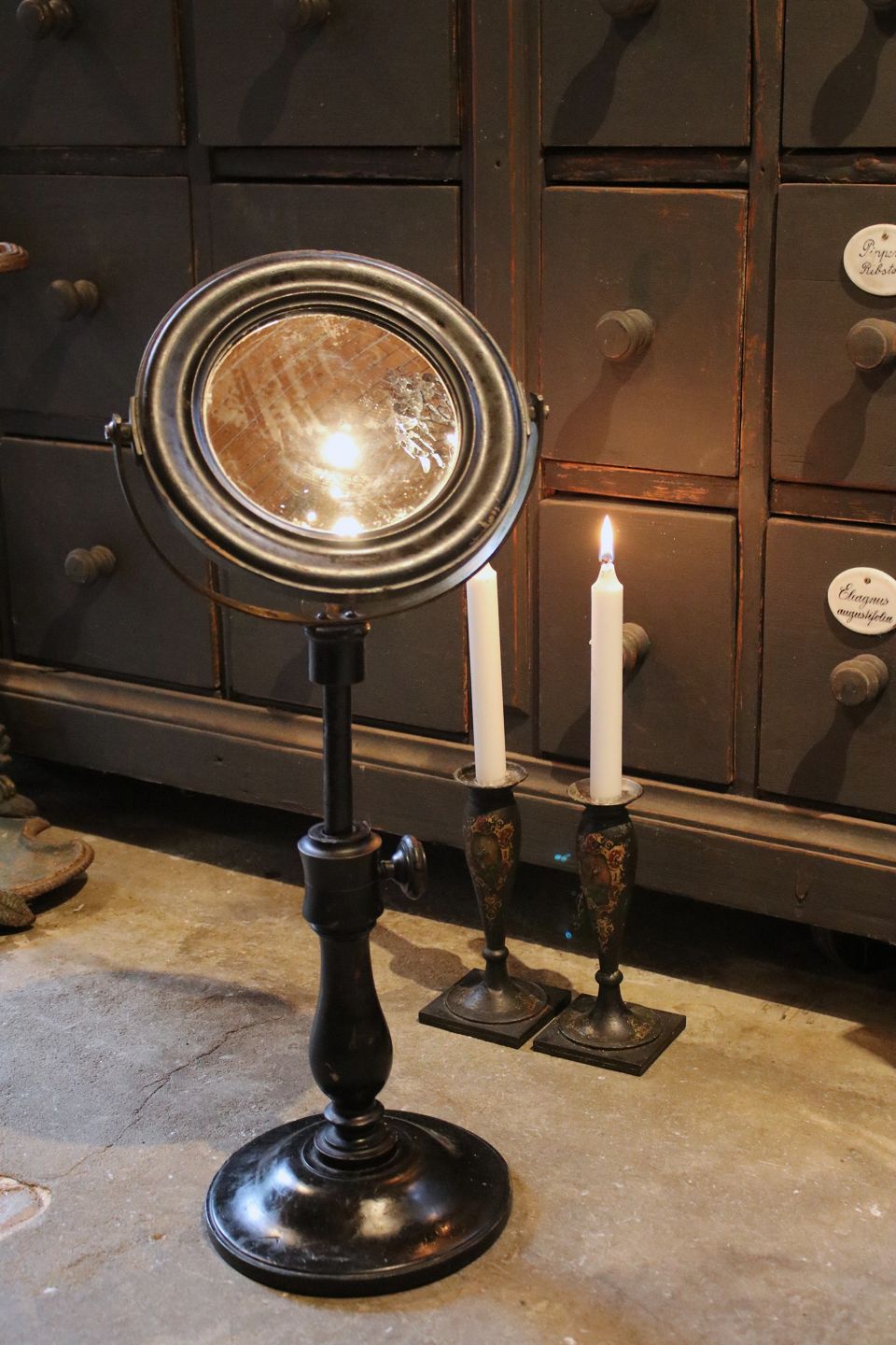 The mirror is from Paris with a mark on the bottom and comes from an old jeweler store.