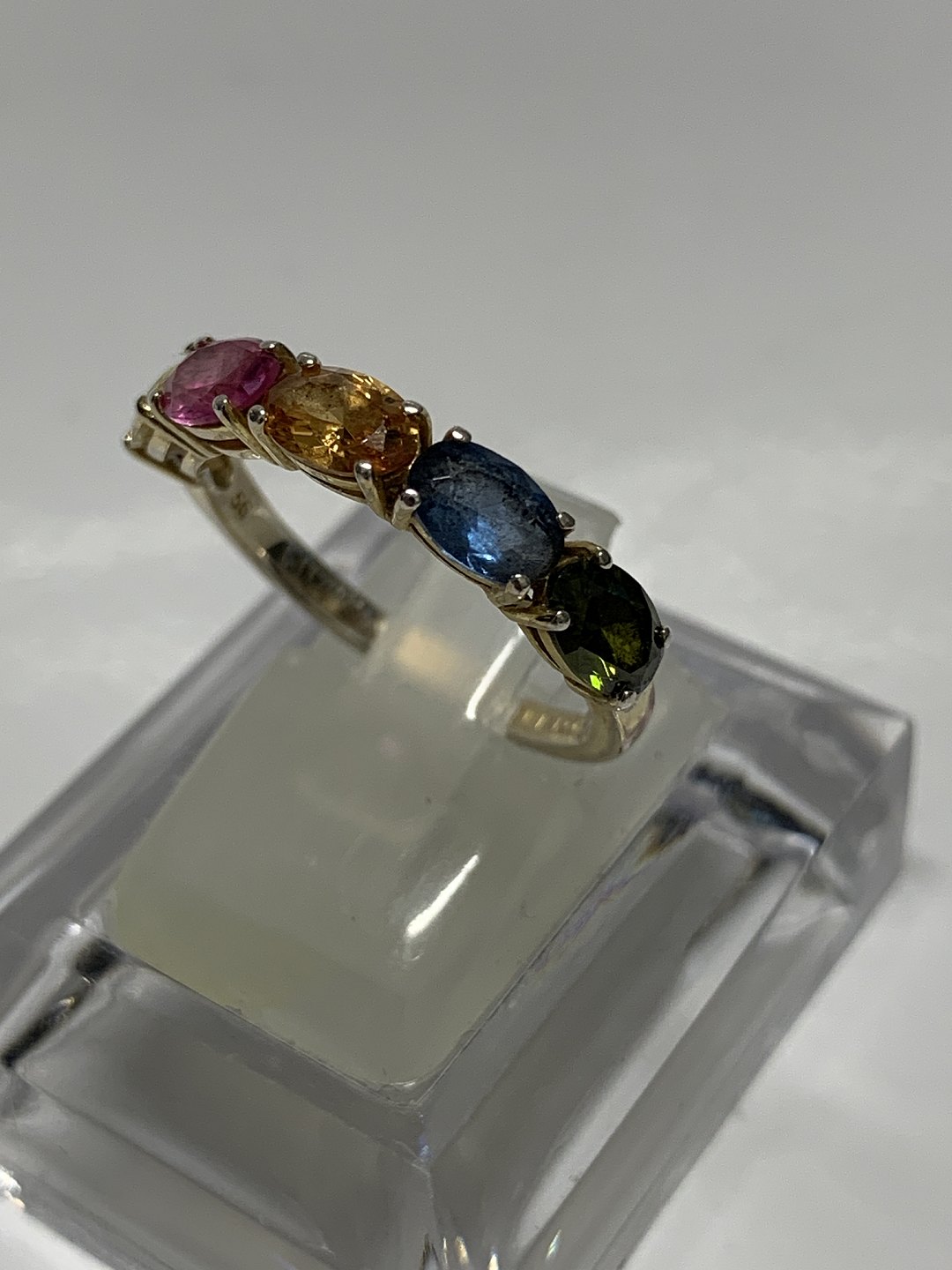 Ring with faceted zircons in sterling silver plated with 18 karat gold