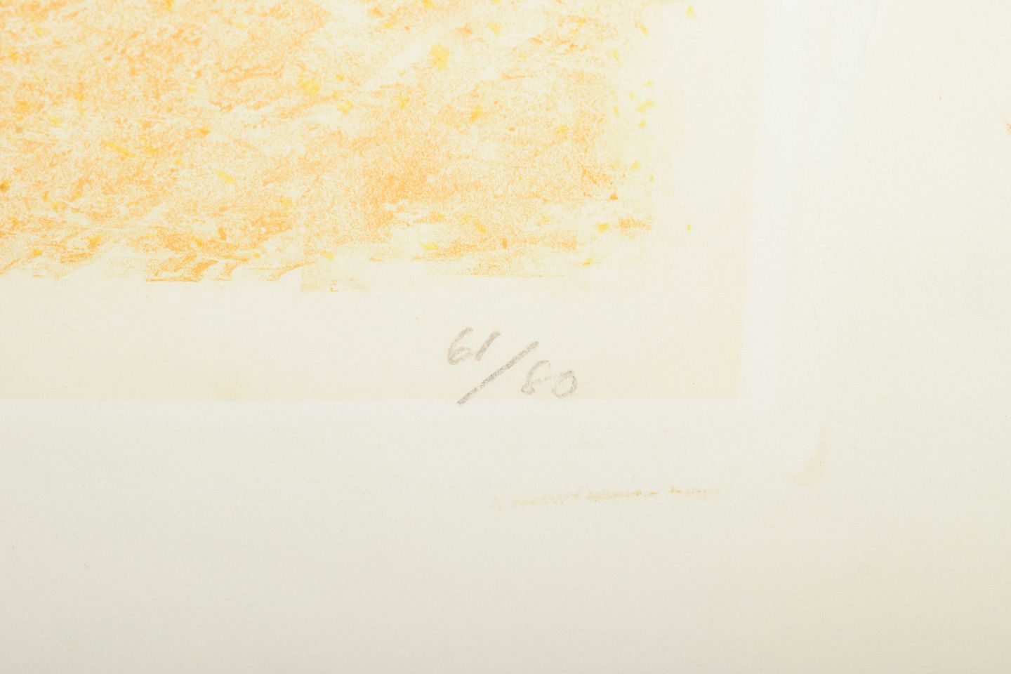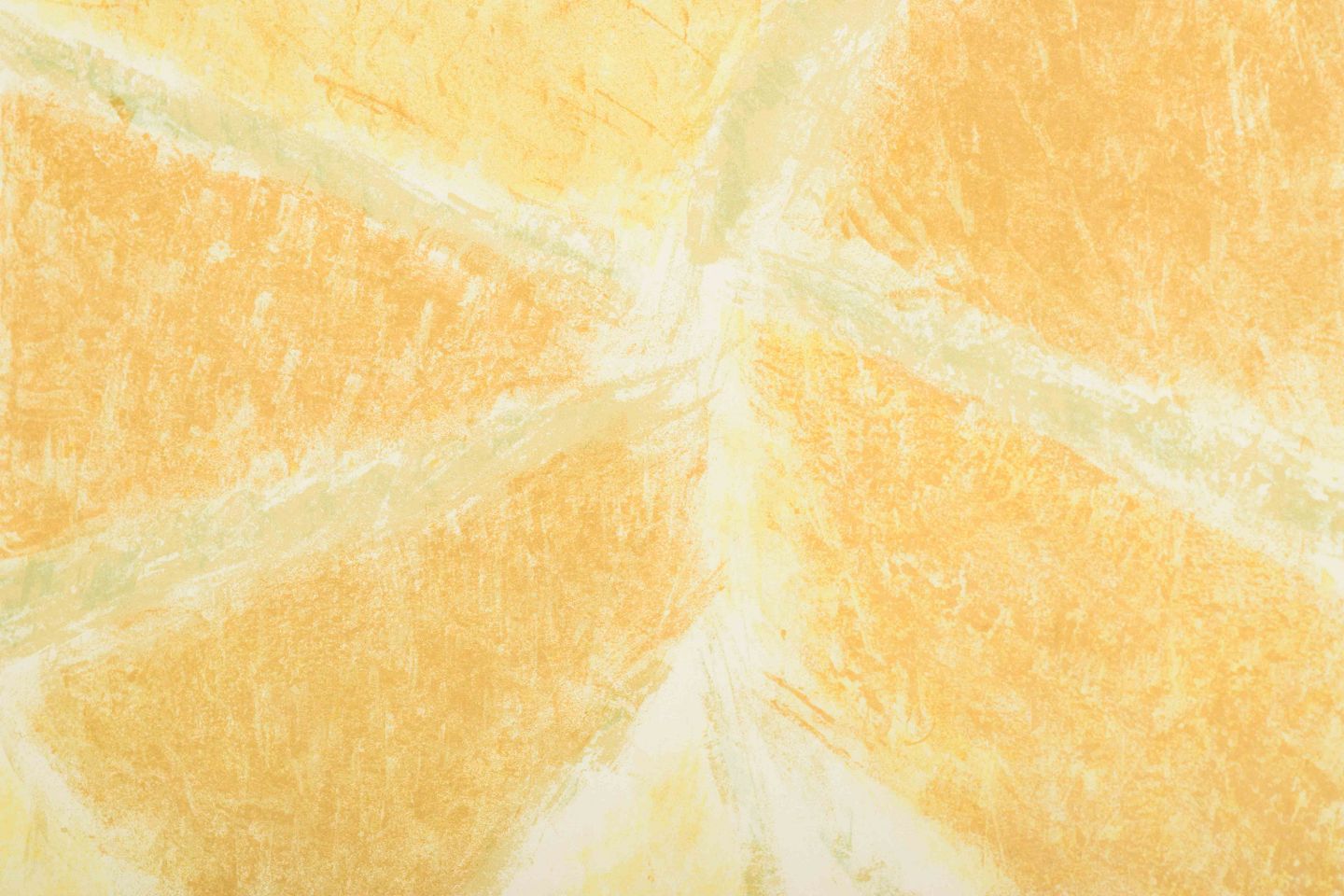 A lyrical abstract work in warm yellow and orange tones, where surfaces and lines form a structured yet organic composition. The piece is characteristic of Christoffersen’s graphic works from the early 1960s, when he explored color fields and texture.